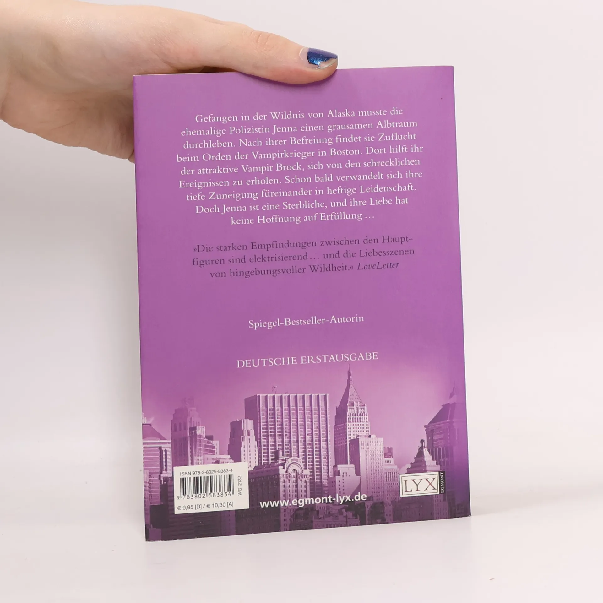 Die ehemalige Polizistin Jenna wird in der Wildnis von Alaska angegriffen und überlebt den Überfall nur mit knapper Not. Doch hinterher gehen seltsame Veränderungen mit ihrem Körper vonstatten. Sie sucht Zuflucht im Haus eines uralten Ordens von Vampirkriegern in Boston, deren Existenz nur wenigen bekannt ist. Dort begegnet Jenna dem attraktiven Vampir Brock, der ihr hilft, sich von ihren Wunden zu erholen. Schon bald werden beide von einer tiefen Leidenschaft zueinander erfasst. Doch ein Geheimnis aus Brocks Vergangenheit und Jennas Sterblichkeit gefährden ihre verbotene Liebe. Der achte Band der erfolgreichen Vampirsaga „Midnight Breed“ von Bestseller-Autorin Lara Adrian!