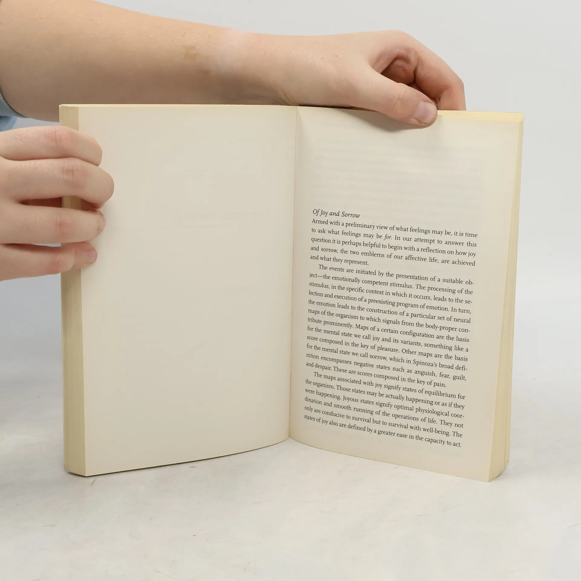Joy, sorrow, jealousy and awe - these and other feelings are the stuff of our daily lives. Presumed to be too private for science to explain and not to be essential for comprehending human rationality and understanding, they have largely been ignored. But not by the great seventeenth-century Dutch philosopher Spinoza. And not by Antonio Damasio. In this book Dr. Damasio draws on his innovative research and on his experience with neurological patients to examine how feelings and the emotions that underlie them support the governance of human affairs.