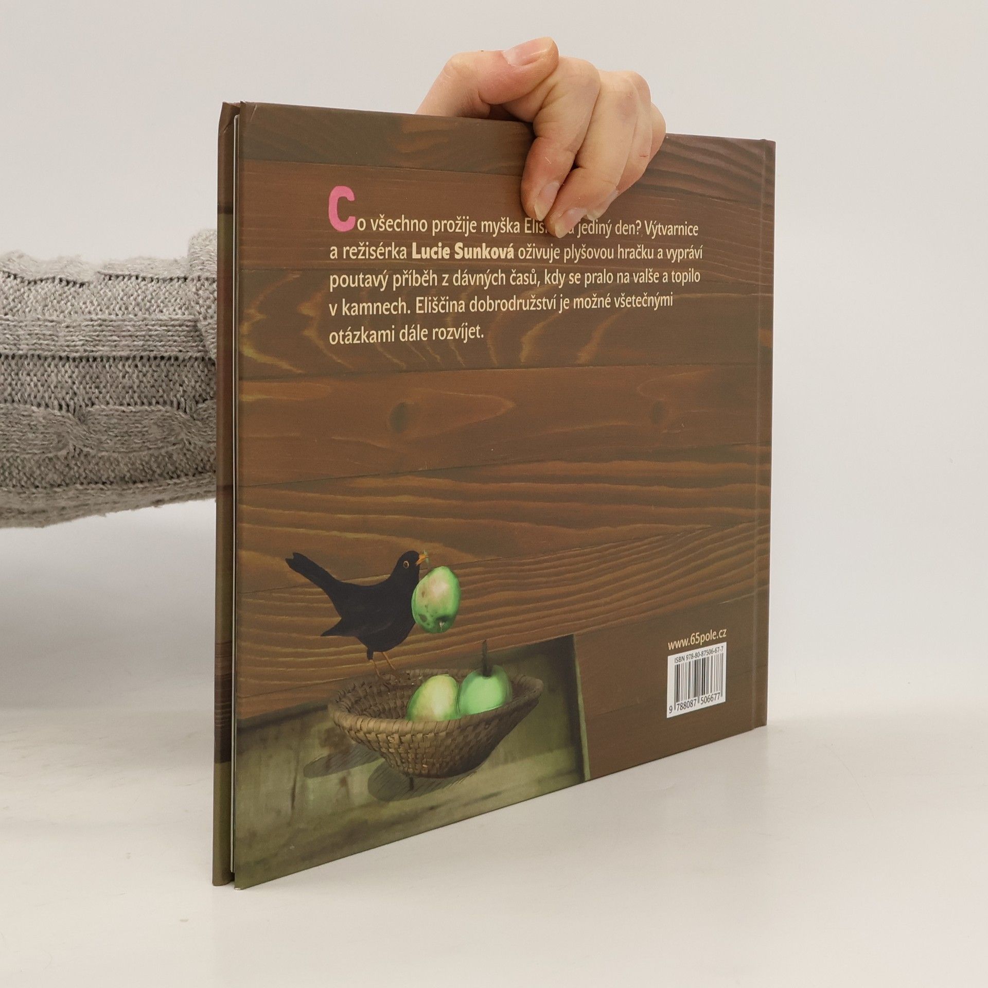Co všechno prožije myška za jediný den? Výtvarnice a režisérka Lucie Sunková oživuje plyšovou hračku a vypráví poutavý obrázkový příběh, ve kterém originálním způsobem kombinuje fotografie s kresbou. Zavádí děti do času babiček a dědečků, kdy se pralo na valše a topilo v kamnech. Příběh myšky Elišky láká děti do tajuplného světa, který jim však bude blízký a známý. Eliščina drobná dobrodružství je možné dále rozvíjet a klást dospělým všetečné otázky. Pro děti od 3 let.