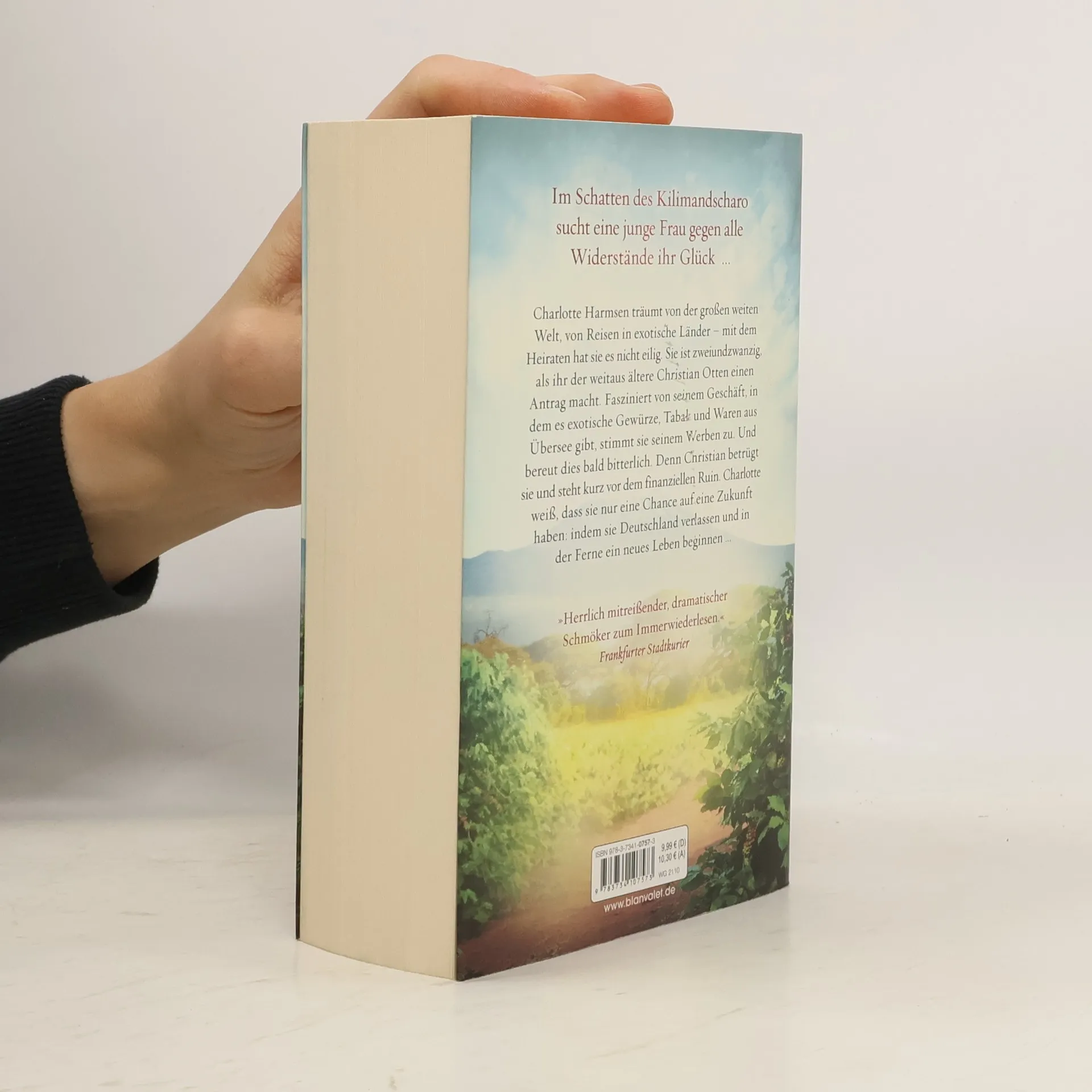 Im Schatten des Kilimandscharo sucht eine junge Frau gegen alle Widerstände ihr Glück … Charlotte Harmsen träumt von der großen weiten Welt, von Reisen in exotische Länder – mit dem Heiraten hat sie es nicht eilig. Sie ist 22, als ihr der weitaus ältere Christian Otten einen Antrag macht. Fasziniert von seinem Geschäft, in dem es exotische Gewürze, Tabak und Waren aus Übersee gibt, stimmt sie seinem Werben zu. Und bereut dies bald bitterlich. Denn Christian betrügt sie und steht bald kurz vor dem finanziellen Ruin. Charlotte weiß, dass sie nur eine Chance auf eine Zukunft haben: indem sie Deutschland verlassen und in der Ferne ein neues Leben beginnen …