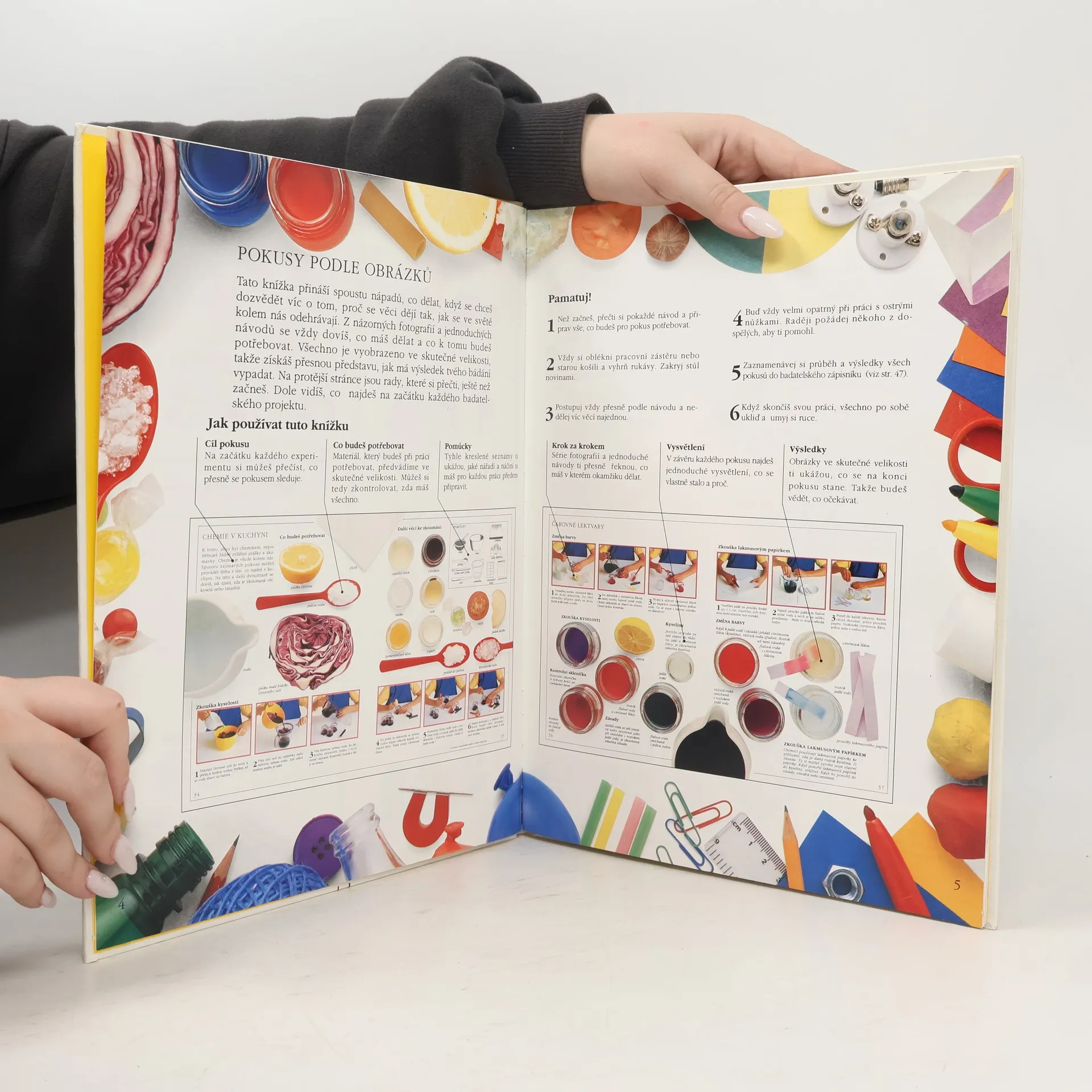 V knize jsou popisovány a názorně předváděny základní pokusy, pravidla.