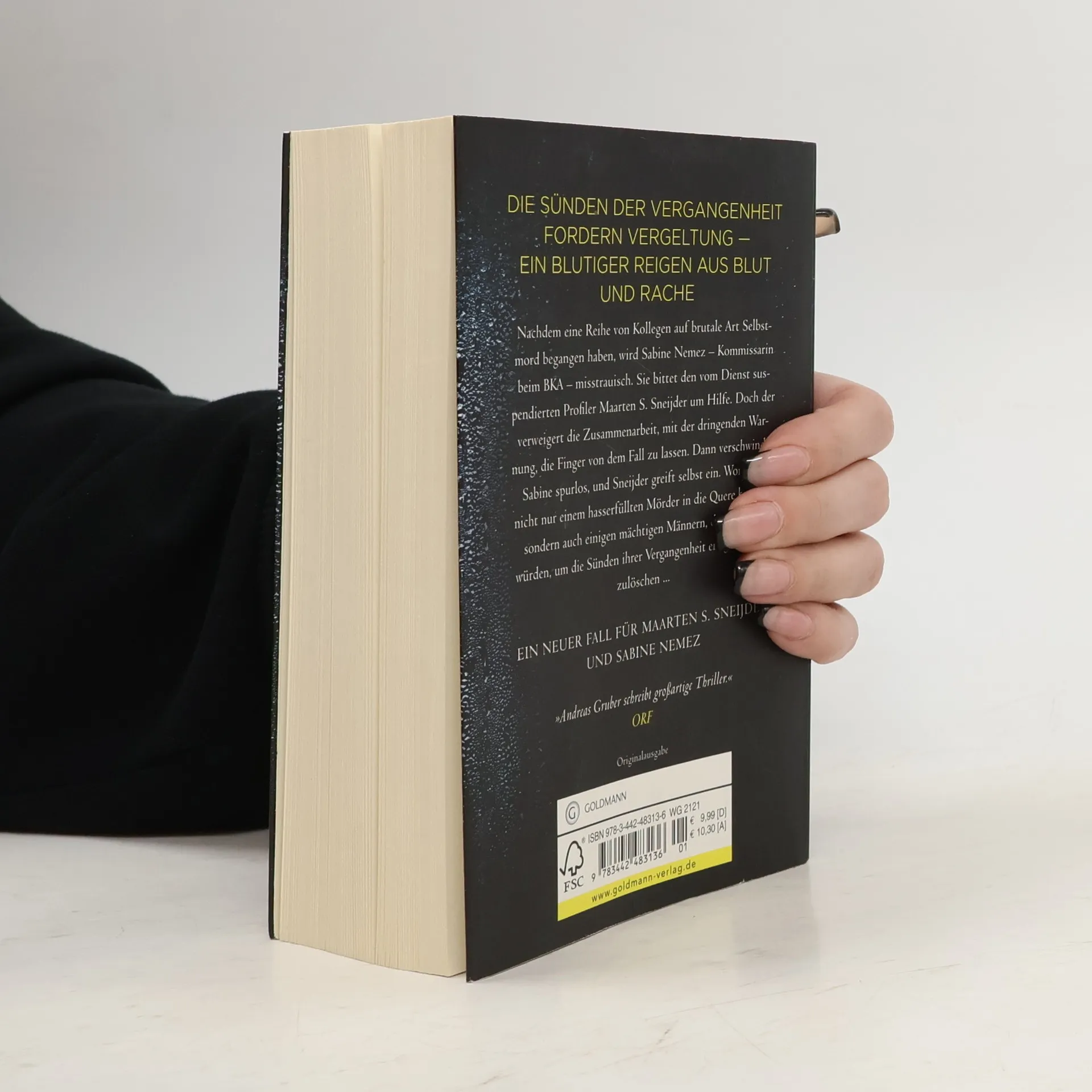 Sneijder und Nemez ermitteln wieder. Nachdem eine Reihe von Kollegen auf brutale Art Selbstmord begangen haben, wird Sabine Nemez – Kommissarin und Ausbilderin beim BKA – misstrauisch. Vieles weist auf eine jahrzehntealte Verschwörung und deren von Rache getriebenes Opfer hin. Sabine bittet ihren ehemaligen Kollegen, den vom Dienst suspendierten Profiler Maarten S. Sneijder, um Hilfe. Doch der verweigert die Zusammenarbeit, mit der dringenden Warnung, die Finger von dem Fall zu lassen. Dann verschwindet Sabine spurlos, und Sneijder greift selbst ein. Womit er nicht nur einem hasserfüllten Mörder in die Quere kommt, sondern auch seinen einstigen Freunden und Kollegen, die alles tun würden, um die Sünden ihrer Vergangenheit endgültig auzulöschen ... Der vierte Fall für Sneijder und Nemez.