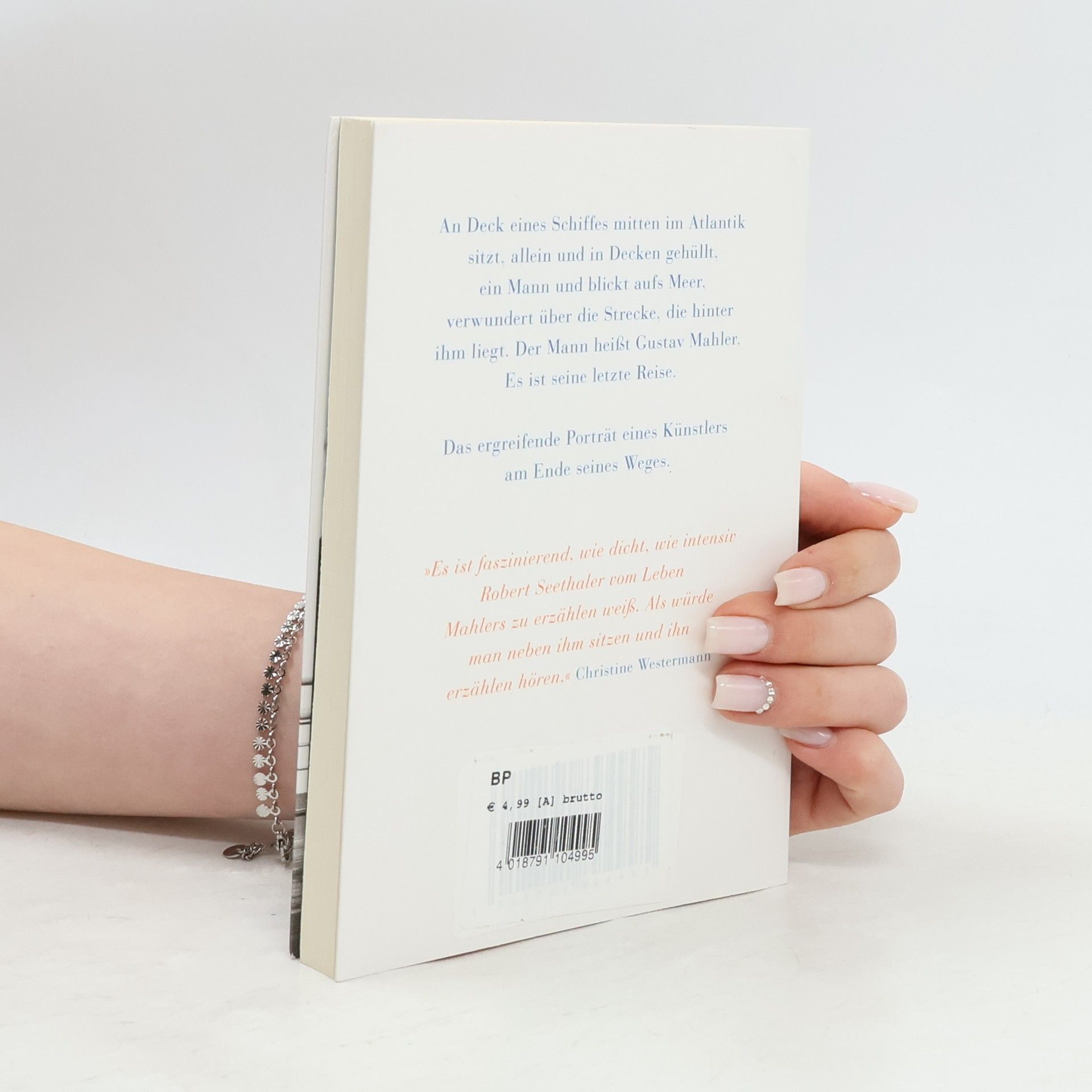 An Deck eines Schiffes auf dem Weg von New York nach Europa sitzt Gustav Mahler. Er ist berühmt, der größte Musiker der Welt, doch sein Körper schmerzt, hat schon immer geschmerzt. Während ihn der Schiffsjunge sanft, aber resolut umsorgt, denkt er zurück an die letzten Jahre, die Sommer in den Bergen, den Tod seiner Tochter Maria, die er manchmal noch zu sehen meint. An Anna, die andere Tochter, die gerade unten beim Frühstück sitzt, und an Alma, die Liebe seines Lebens, die ihn verrückt macht und die er längst verloren hat. Es ist seine letzte Reise.