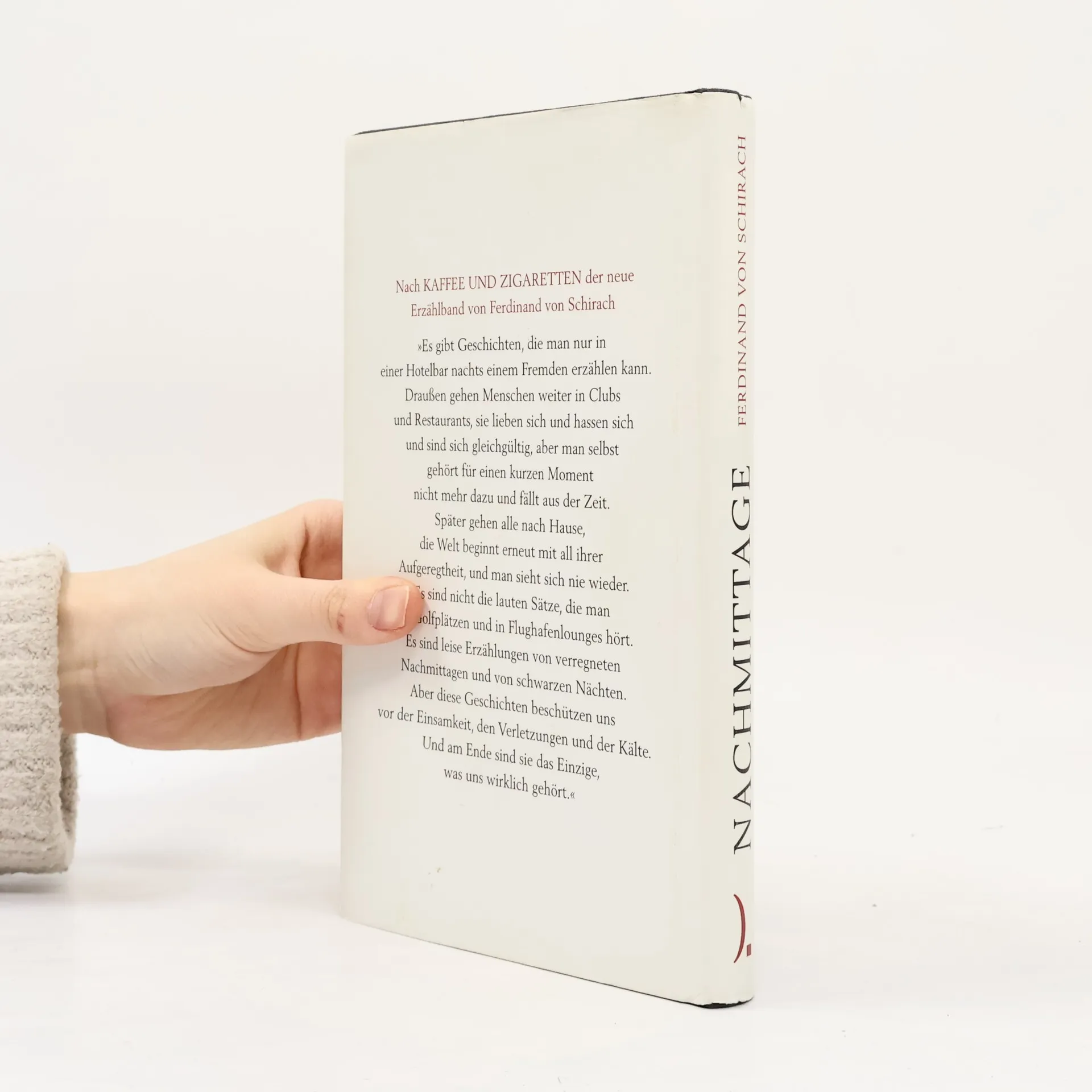 Nach »Kaffee und Zigaretten« der neue Erzählband von Ferdinand von Schirach. Ferdinand von Schirach erzählt von milden Frühsommermorgen, verregneten Nachmittagen und schwarzen Nächten. Seine Geschichten spielen in Berlin, Pamplona, Oslo, Tokio, Zürich, New York, Marrakesch, Taipeh und Wien. Es sind kurze Geschichten über die Dinge, die unser Leben verändern, über Zufälle, falsche Entscheidungen und die Flüchtigkeit des Glücks. Schirach erzählt von der Einsamkeit der Menschen, von der Kunst, der Literatur, dem Film und immer auch von der Liebe.