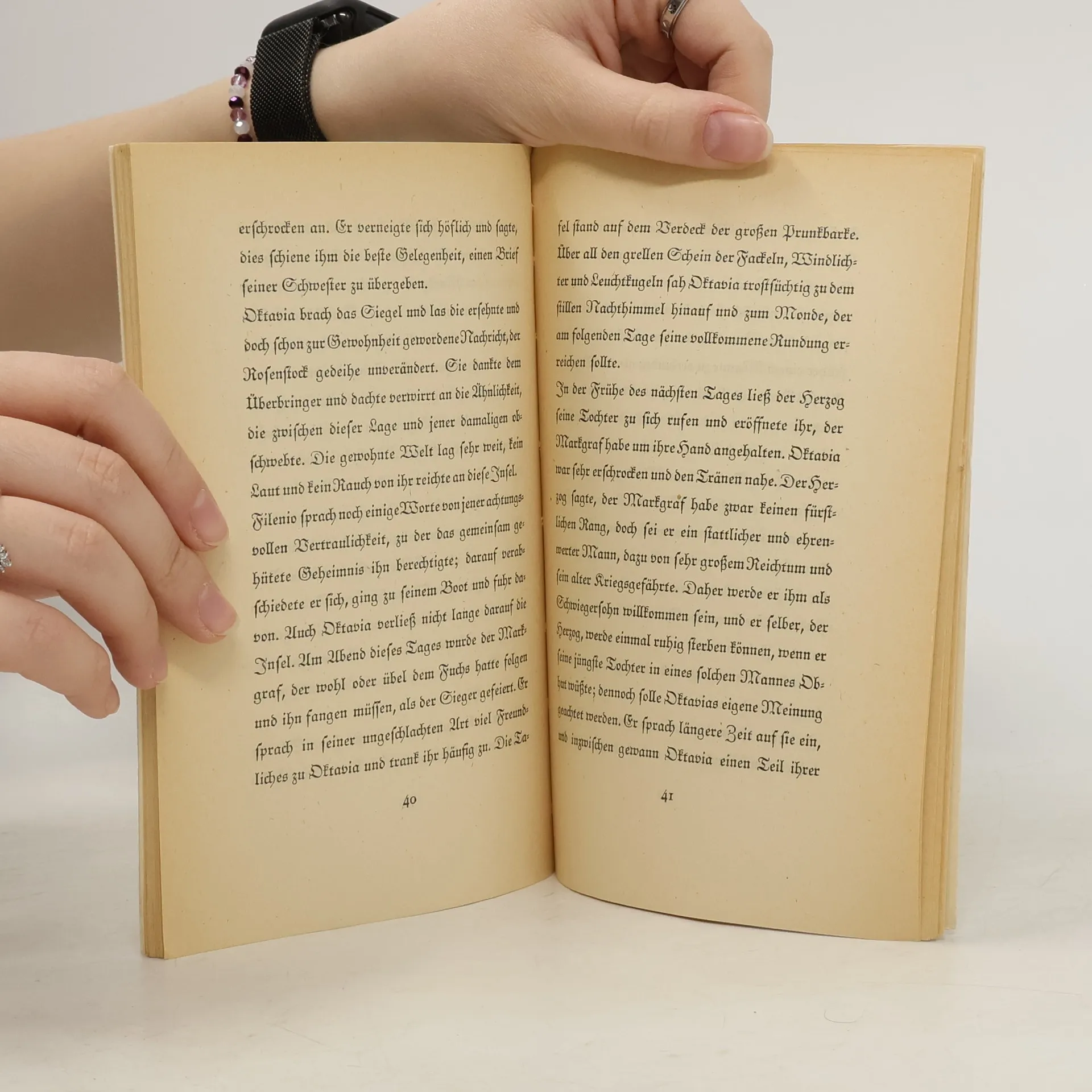 Bevor er sich auf eine lange Reise macht, triff t der Dichter Fabeck noch einmal seine Freundin Christine. Wie jeden Abend steigen die beiden einen Berg hinauf, und während die Menschen unten im Tal zu Bett gehen, bittet Christine den Freund um eine Geschichte. Sie setzen sich vor ein steinernes Tempelchen, und Fabeck beginnt, von einem Liebespaar zu erzählen, das Abschied nehmen muss, und von einem verzauberten spanischen Rosenstock, der eines Tages zu welken beginnt.