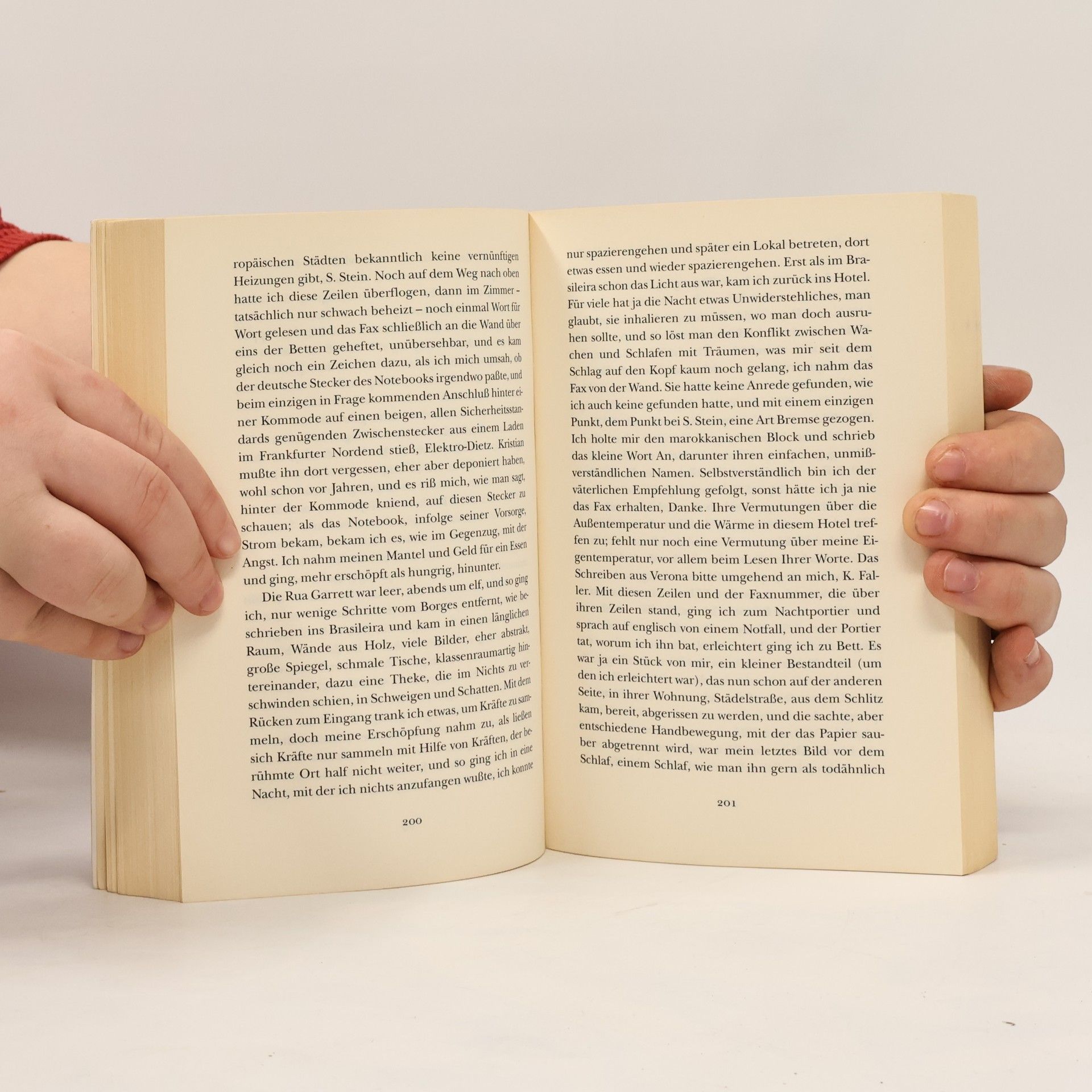 »Ich bin, was ich erzähle«, sagt Karl Faller, Held des Romans, zu der jungen Staatsanwältin Suse Stein, die ihn in einer Mordsache vernimmt und trotz aller Selbstbezichtigung des Verdächtigen dessen Unschuld beweist. Da ist unter anderem von einem Lehrer die Rede, den Karl schon als Schüler erschlagen haben will, und von erst kürzlich umgekommenen Eltern, an deren Tod der Sohn sich die Schuld gibt. Doch in das Zentrum von Karls Erzählen rückt immer zwingender sein schillernder Vater Kristian, der den Sohn in den Wirren der Studentenbewegung früh verlassen hat und später eine einzigartige Buchreihe erfand, »Fallers Stadtführer für Alleinreisende«. Kaum auf freiem Fuß bereist Karl die Städte, die sein Vater in unverwechselbarer Weise beschrieben hat, davon überzeugt, Kristians Wege durch versteckte Gassen und Lokale seien auch Wege zu seinen Geliebten oder überhaupt zur Liebe. Mit leidenschaftlicher Neugier folgt der Sohn den Spuren eines fernen und doch vom Alter her zu nahen Vaters und begibt sich dabei auf die Suche nach einer rätselhaften Fremden, die in allen Stadtführern erwähnt wird. Aber nicht nur er folgt einer Fährte, auch an seine Geschichte hat sich jemand geheftet. Die junge Staatsanwältin Stein, schon während der Verhöre ebenso an dem Verdächtigen interessiert wie an der Wahrheit, hat Urlaub genommen; mit ihrem Auftauchen treffen Sprache und Liebe für Karl zum ersten Mal aufeinander.