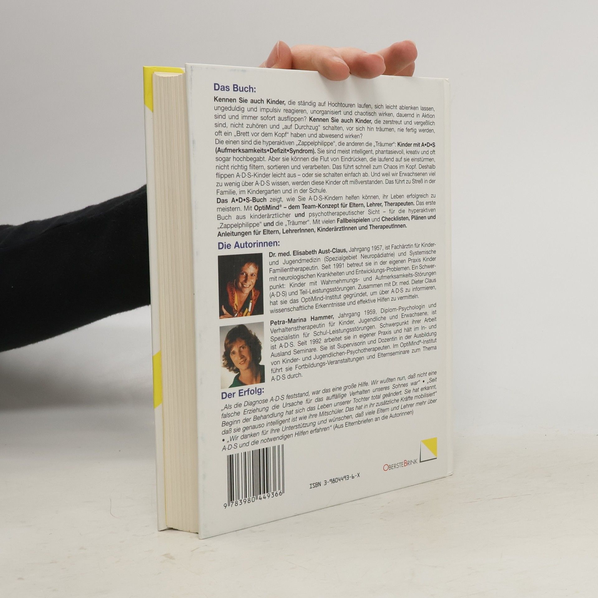 Kennen Sie auch Kinder, die ständig auf Hochtouren laufen, sich leicht ablenken lassen, ungeduldig und impulsiv reagieren, unorganisiert und chaotisch wirken, dauernd in Aktion sind und immer sofort ausflippen? Kinder, die zerstreut und vergesslich sind, nicht zuhören und „auf Durchzug“ schalten, vor sich hin träumen, nie fertig werden, oft ein „Brett vor dem Kopf“ haben und abwesend wirken? Die einen sind die hyperaktiven „Zappelphilippe“, die anderen die „Träumer“: Kinder mit A. D. S (Aufmerksamkeits-Defizit-Syndrom). Sie sind meist intelligent, phantasievoll, kreativ und oft sogar hochbegabt. Aber sie können die Flut von Eindrücken, die laufend auf sie einstürmen, nicht richtig filtern, sortieren und verarbeiten. Das führt schnell zum Chaos im Kopf. Deshalb flippen A. D. S-Kinder leicht aus – oder sie schalten einfach ab. Das führt zu Stress in der Familie, im Kindergarten und in der Schule. Das A. D. S-Buch zeigt, wie Sie A. D. S-Kindern helfen können, ihr Leben erfolgreich zu meistern. Mit OptiMind® – dem Team-Konzept für Eltern, Lehrer, Therapeuten. Das erste Buch aus kinderärztlicher und psychotherapeutischer Sicht – für die hyperaktiven „Zappelphilippe“ und die „Träumer“. Mit vielen Fallbeispielen und Checklisten, Plänen und Anleitungen.