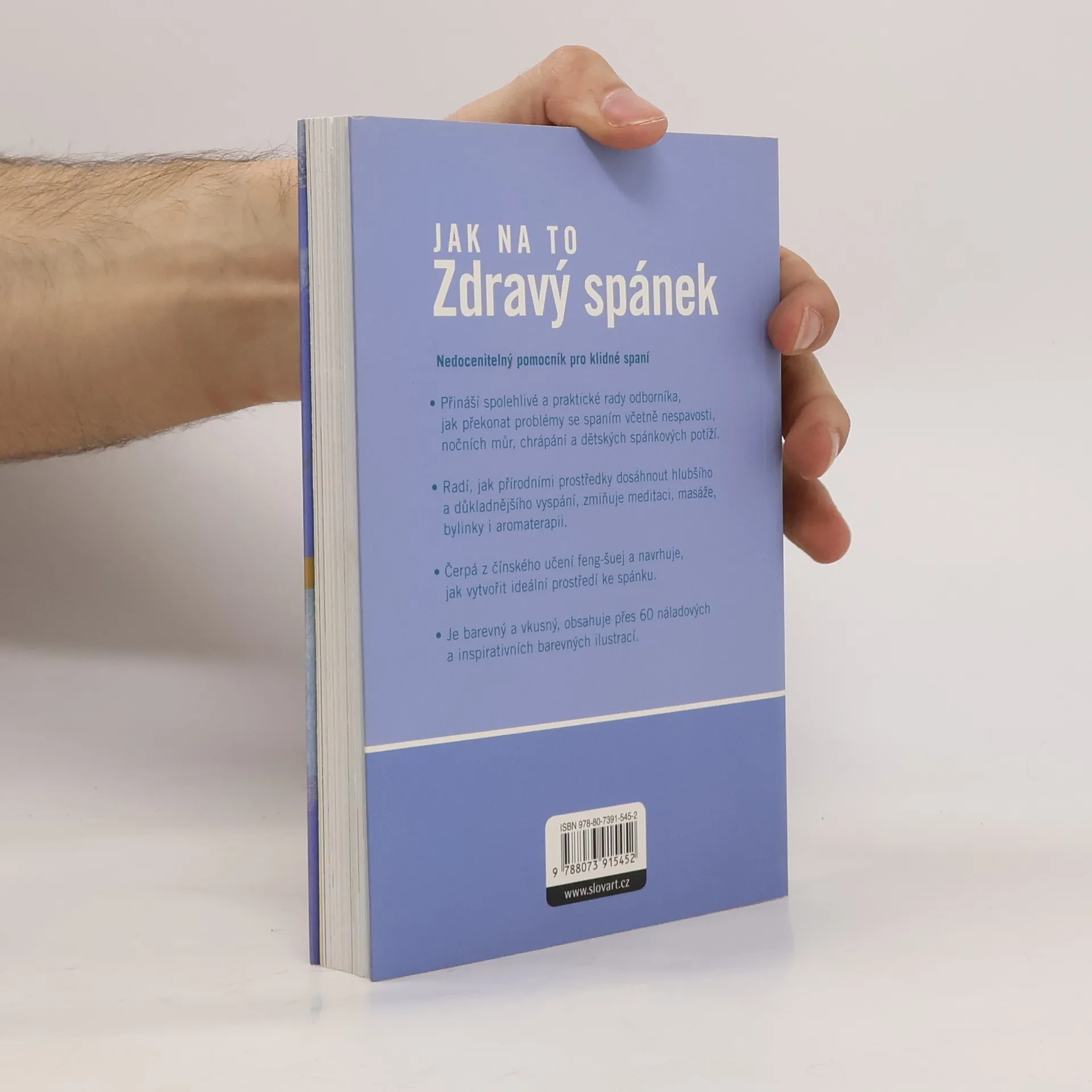 Nedocenitelný pomocník pro klidné spaní - Přináší spolehlivé a praktické rady odborníka, jak překonat problémy se spaním, včetně nespavosti, nočních můr, chrápání a dětských spánkových potíží - Radí, jak přírodními prostředky dosáhnout hlubšího a důkladnějšího vyspání, zmiňuje meditaci, masáže, bylinky i aromaterapii - Čerpá z čínského učení feng-šuej a navrhuje, jak vytvořit ideální prostředí ke spánku - Je barevný a vkusný, obsahuje přes 60 náladových a inspirativních barevných ilustrací
