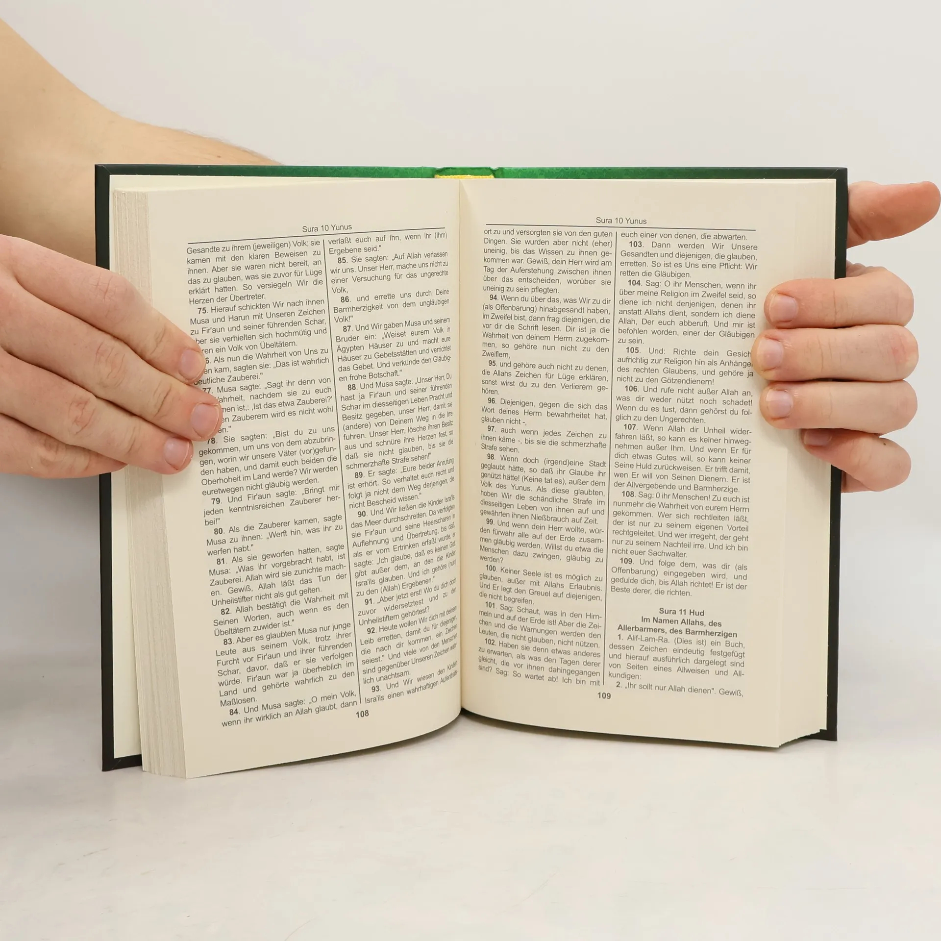 Die Übersetzung des Qur´ans von Dr. Nadeem Elyas und Frank Bubenheim wurde als bisher einzige Übersetzung in den 1980er durch das saudische Religionsministerium in Auftrag gegeben und beglaubigt. Zugleich wird diese Übersetzung direkt in der für Muslime aller Welt heiligen Stadt Medina von der berühmten König Fahd Qur´an Druckerei verlegt.Seither gilt sie durch ihre konsequente Nähe zum arabischen Originaltext und gerade wegen der ausführlichen Kommentierung mit Übersetzungsalternativen, ohne dabei Einbußen bei der Lesbarkeit einstreichen zu müssen, als die bewährteste Übersetzung im gesamten deutschsprachigen Raum.Textlich ist diese Ausgabe multilingual aufgebaut, soll bedeuten, der arabische Originaltext wird jeweils auf der rechten Seite gezeigt, während selbiger Text parallel auf der linken Seite ins Deutsche übersetzt wird.