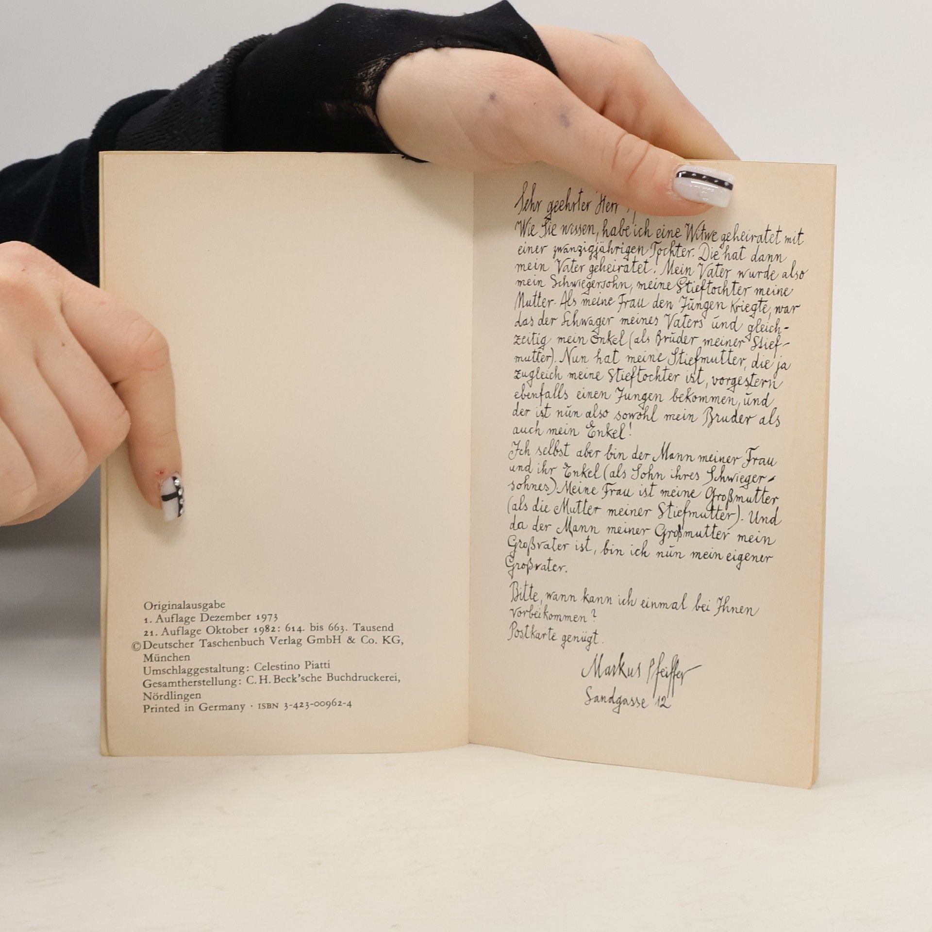 There are currently of book Es fängt damit an, daß am Ende der Punkt fehlt (1973) in stock.