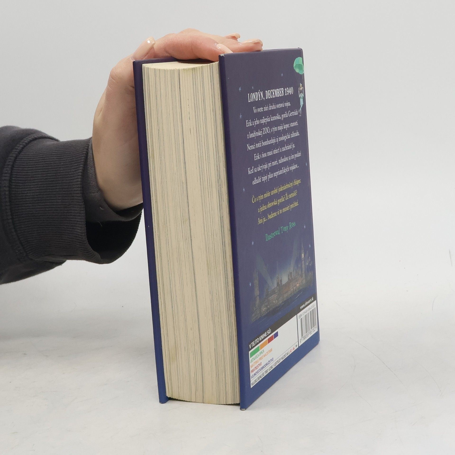 Ďalšia kniha od svetoznámeho britského komika a autora detských bestsellerov Davida Walliamsa je príbehom chlapca, ktorý má ozajstný problém.Musí pred bombardovaním počas druhej svetovej vojny zachrániť opice. Ako to? V roku 1940 je totiž Veľká Británia vo vojne s nacistickým Nemeckom. Jedenásťročný Erik trávi najviac času v londýnskej zoo, kde žije zviera, ktoré je preňho veľmi dôležité - gorila Getrúda. Erik ju chce ochrániť pred bombovými útokmi, a tak sa so svojím strýkom Sidom, ošetrovateľom v zoo, rozhodne s Gertrúdou utiecť. Ukrývajú sa pri mori a úplnou náhodou sa im podarí odhaliť tajný plán nepriateľských vojakov...