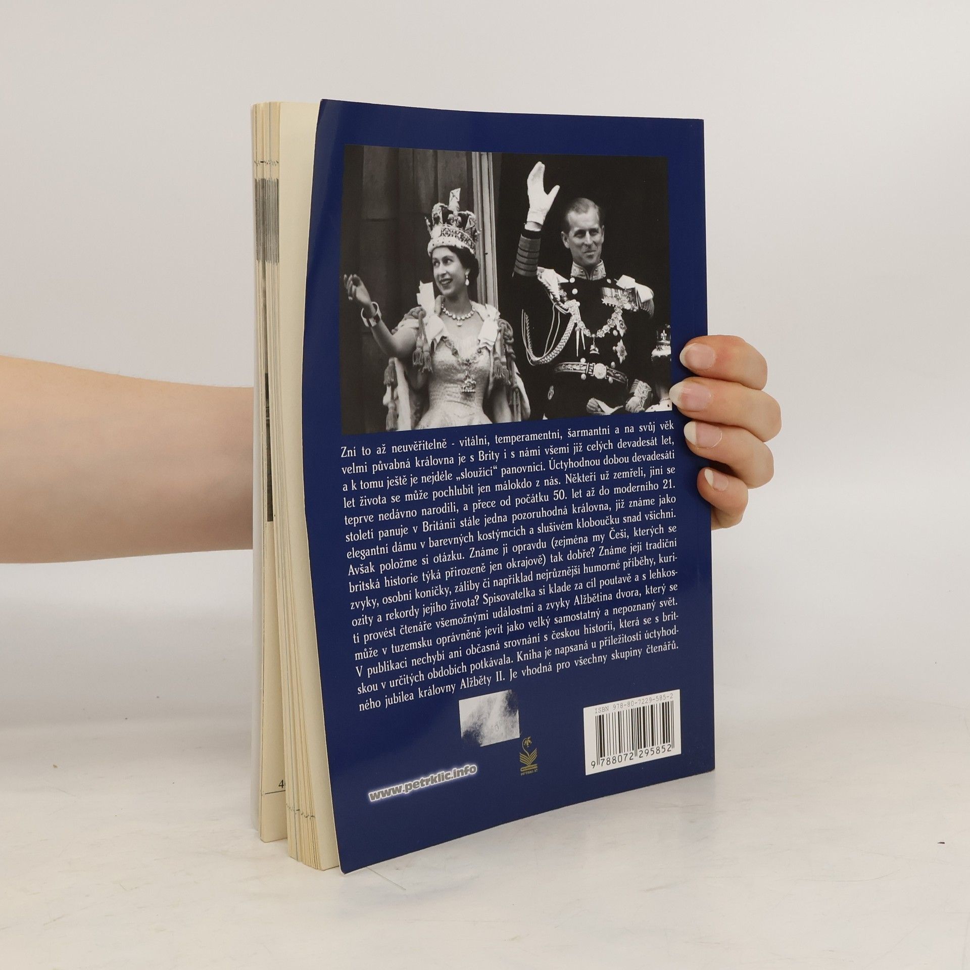 Zní to až neuvěřitelně - vitální, temperamentní, šarmantní a na svůj věk velmi půvabná královna je s Brity i s námi všemi již celých devadesát let, a k tomu ještě je nejdéle „sloužící“ panovnicí. Úctyhodnou dobou devadesáti let života se muže pochlubit jen málokdo z nás. Někteří už zemřeli, jiní se teprve nedávno narodili, a přece od počátku 50. let až do moderního 21. století panuje v Británii stále jedna pozoruhodná královna, již známe jako elegantní dámu v barevných kostýmcích a slušivém kloboučku snad všichni. Avšak položme si otázku. Známe ji opravdu (zejména my Češi, kterých se britská historie týká přirozeně jen okrajově) tak dobře? Známe její tradiční zvyky, osobní koníčky, záliby či například nejrůznější humorné příběhy, kuriozity a rekordy jejího života? Spisovatelka si klade za cíl poutavě a s lehkostí provést čtenáře všemožnými událostmi a zvyky Alžbětina dvora, který se muže v tuzemsku oprávněně jevit jako velký samostatný a nepoznaný svět. V publikaci nechybí ani občasná srovnání s českou historií, která se s britskou v určitých obdobích potkávala. Kniha je napsaná u příležitosti úctyhodného jubilea královny Alžběty II. Je vhodná pro všechny skupiny čtenářů.