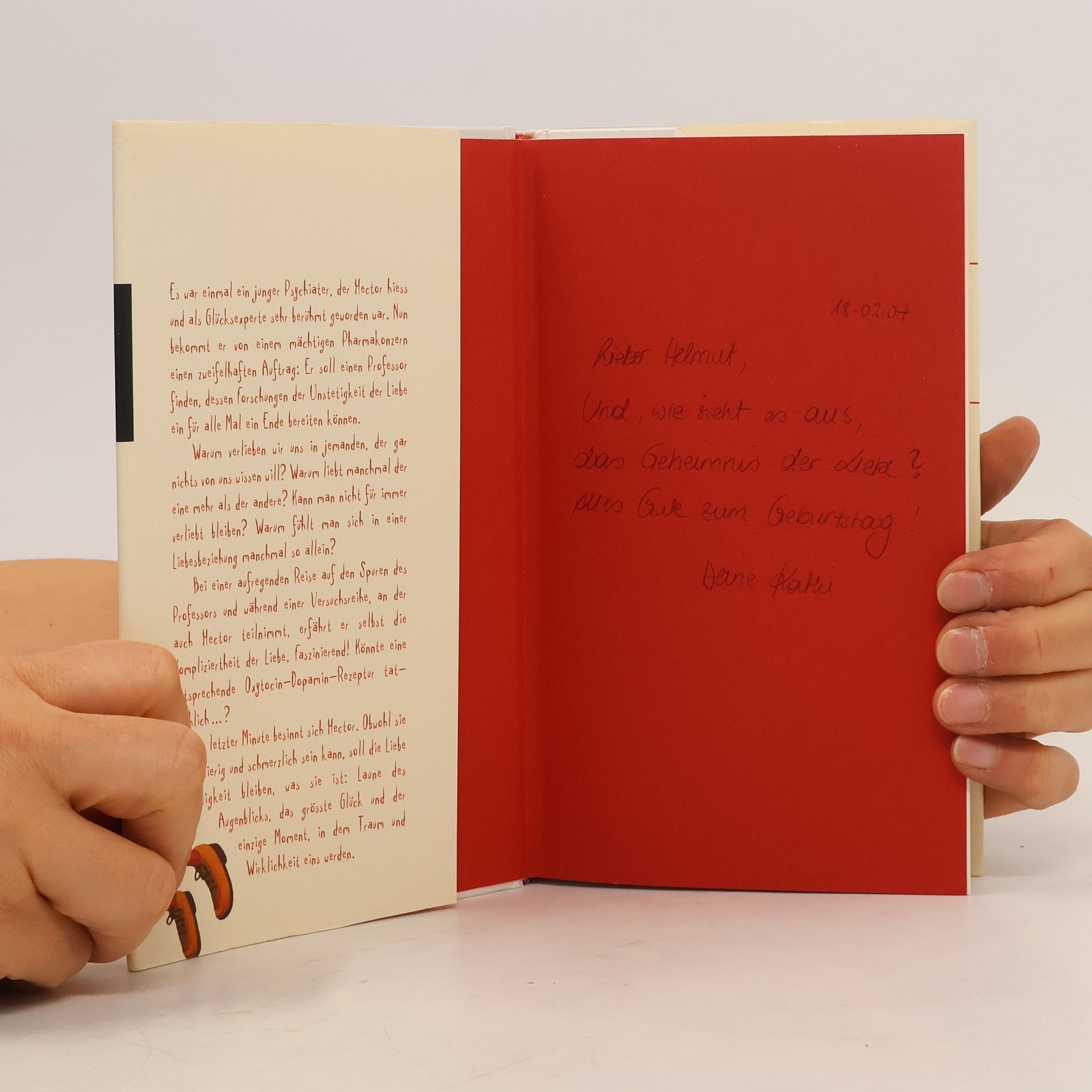 Es war einmal ein junger Psychiater, der Hector hieß und als Glücksexperte sehr berühmt geworden war. Nun bekommt er von einem mächtigen Konzern einen zweifelhaften Auftrag: der Unstetigkeit der Liebe durch die Entwicklung entsprechender Liebespillen auf die Sprünge zu helfen. Warum verlieben wir uns in jemanden, der gar nichts von uns wissen will? Warum liebt manchmal der eine mehr als der andere? Kann man nicht für immer verliebt bleiben? In einer aufregenden Recherche und einer Versuchsreihe, an der auch Hector selbst teilnimmt, erfährt er alles über das schwierige Zusammenleben von Männern und Frauen. Faszinierend! Könnte eine entsprechende Oxytocin-Dopamin-Rezeptur tatsächlich.? In letzter Minute besinnt sich Hector. Obwohl sie so kompliziert und schmerzlich sein kann, soll die Liebe in Ewigkeit bleiben, was sie ist: Laune des Augenblicks, das größte Glück und die einzige Macht, die tiefe Sehnsucht stillen kann.