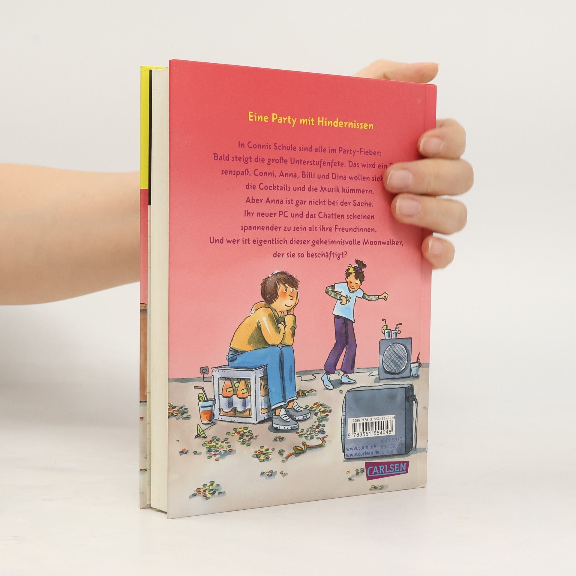 In Connis Schule sind alle im Party-Fieber: Bald steigt die große Unterstufenfete. Das wird ein Riesenspaß. Conni, Anna, Billi und Dina wollen sich um die Cocktails und die Musik kümmern. Aber Anna ist gar nicht bei der Sache. Ihr neuer PC und das Chatten scheinen spannender zu sein als ihre Freundinnen. Und wer ist eigentlich dieser geheimnisvolle Moonwalker, der sie so beschäftigt?