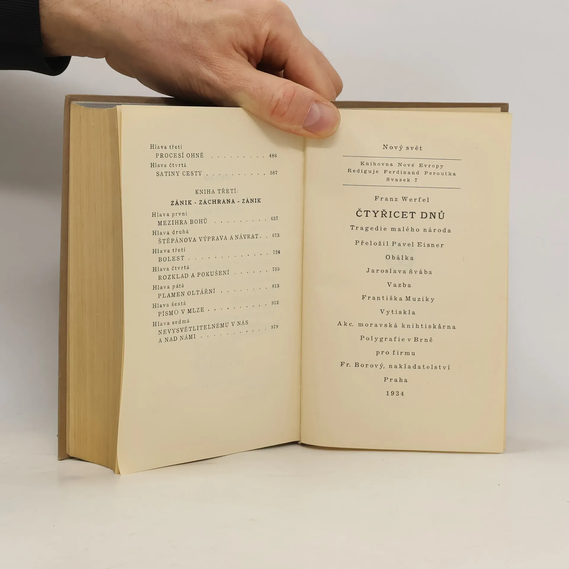 Inspirací této sugestivní knihy byl život arménských uprchlíků v Damašku po 1. světové válce. Za války se turecká armáda pod záminkou zajištění týlu dopouštěla nelidské genocidy na arménských obyvatelích svého území hromadnými deportacemi do mezopotamské pouště. Proti tomuto údělu se vzbouřila skupina arménských sedláků, kteří se pod vedením vzdělaného obchodníka opevní na náhorní planině a po čtyřicet dnů se brání proti zuřivému náporu Turků. Jejich vůdce obětuje za svůj lid život, ale umírá s vědomím, že ti, kteří přežili toto období, jsou zachráněni a mohou prchnout do Egypta.