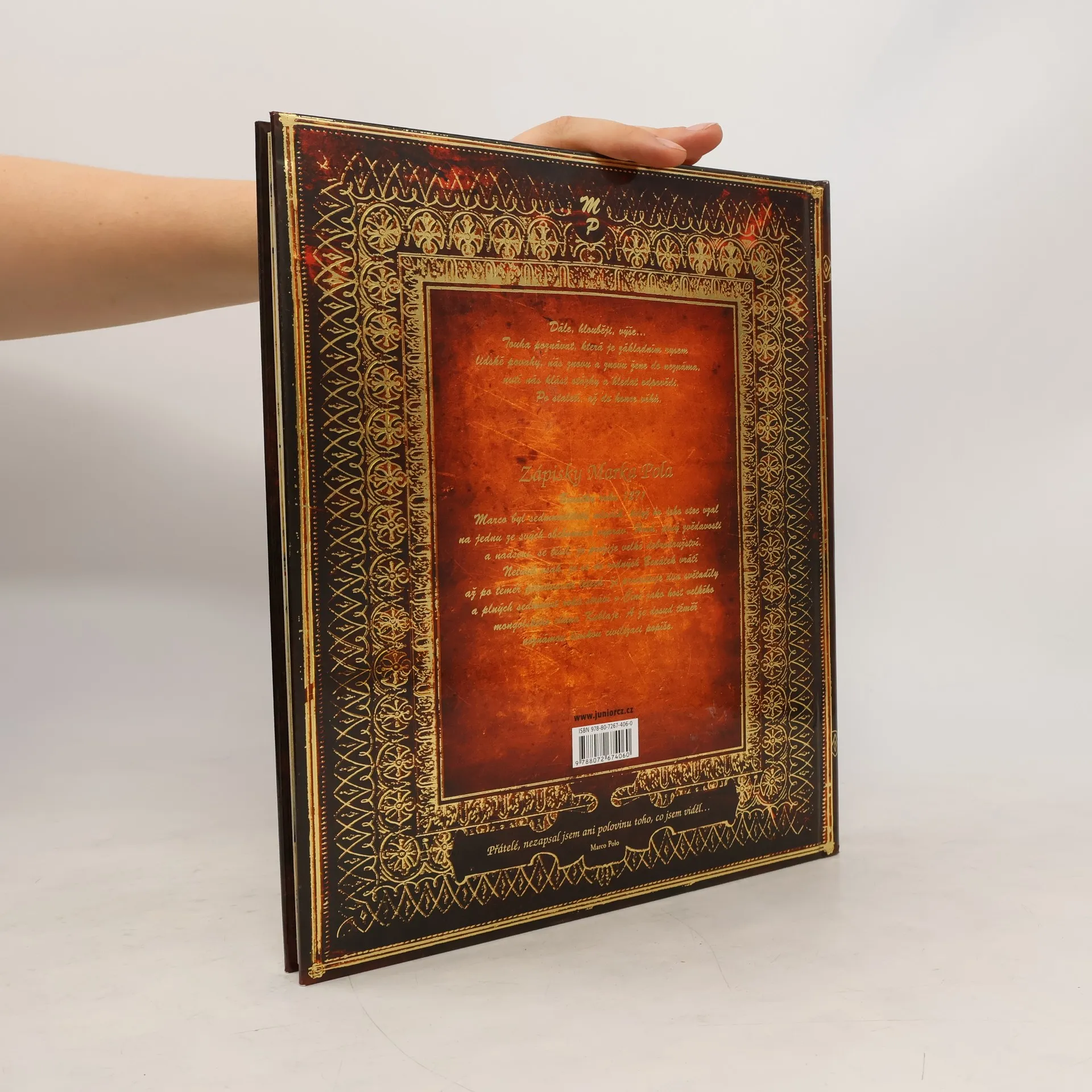 Italský spisovatel Paolo Marcos za svého pobytu v Benátkách objevil podivuhodnou knihu. Ukázalo se, že jsou to zápisky slavného cestovatele a objevitele Marka Pola, který tam deník počátkem 14. století ukryl. Kronika přežila v úkrytu více než 700 let a dnes máte před sebou knížku svého druhu výjimečnou - vylíčení velké cesty Marka Pola do Číny, napsané jeho vlastní rukou. Kniha je pečlivým přetlumočením rukopisu, jen mírně přizpůsobeným dnešnímu čtenáři. Najdete zde mnoho neocenitelných postřehů a poznámek, stejně jako náčrtky prozrazující talentovaného kreslíře. Kronika seznamuje s kulturou regionů, které Marco Polo navštívil, a podává obraz každodenního života, stejně jako náboženství zdejších obyvatel. Především nás však vede k tomu, abychom vnímali exotický asijský kontinent očima samotného objevitele. Následujte tedy Marka Pola na Dálný východ - od živých přístavů, nekonečných pouští a hor sahajících k nebi až do srdce Asie.