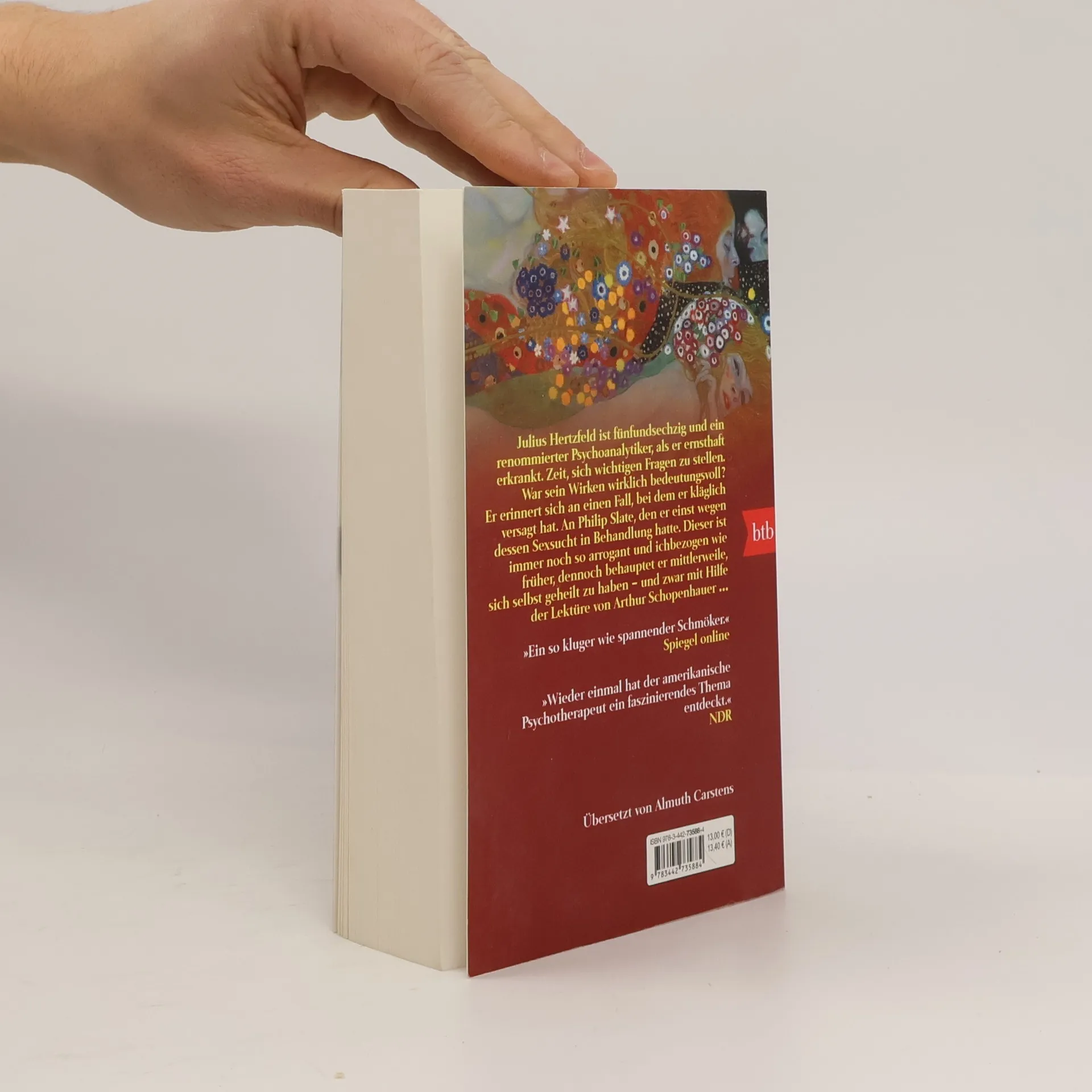 Vom Autor des Bestsellers „Die rote Couch“. Julius Hertzfeldt ist 65 und ein renommierter Psychoanalytiker, als er ernsthaft erkrankt. Zeit, sich wichtigen Fragen zu stellen. War sein Wirken wirklich bedeutungsvoll? Er erinnert sich an einen Fall, bei dem er kläglich versagt hat: An Philip Slate, den er einst wegen dessen Sexsucht in Behandlung hatte. Dieser ist immer noch so arrogant und ichbezogen wie früher, dennoch behauptet er, sich mittlerweile selbst geheilt zu haben – und zwar mit Hilfe der Lektüre von Arthur Schopenhauer ...