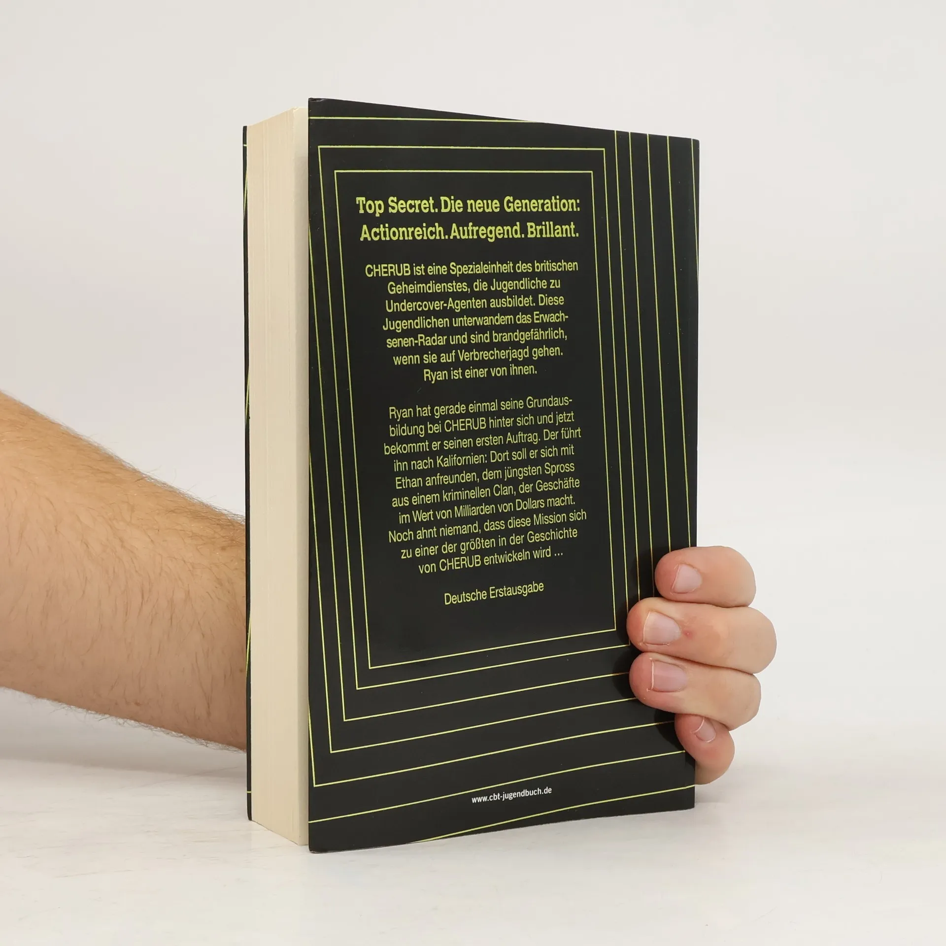 Ein neuer Agent. Ein neuer Auftrag: TOP SECRET – Die neue Generation! Ryan ist eben erst von Cherub als Agent angeworben worden. Er hat gerade einmal seine Grundausbildung hinter sich und jetzt bekommt er seinen ersten Auftrag. Der führt ihn nach Kalifornien: Dort soll er sich mit Ethan anfreunden, dem jüngsten Spross aus einem kriminellen Clan, der Geschäfte im Wert von Milliarden von Dollars macht. Noch ahnt niemand, dass diese Mission sich zu einer der größten in der Geschichte von Cherub entwickeln wird …