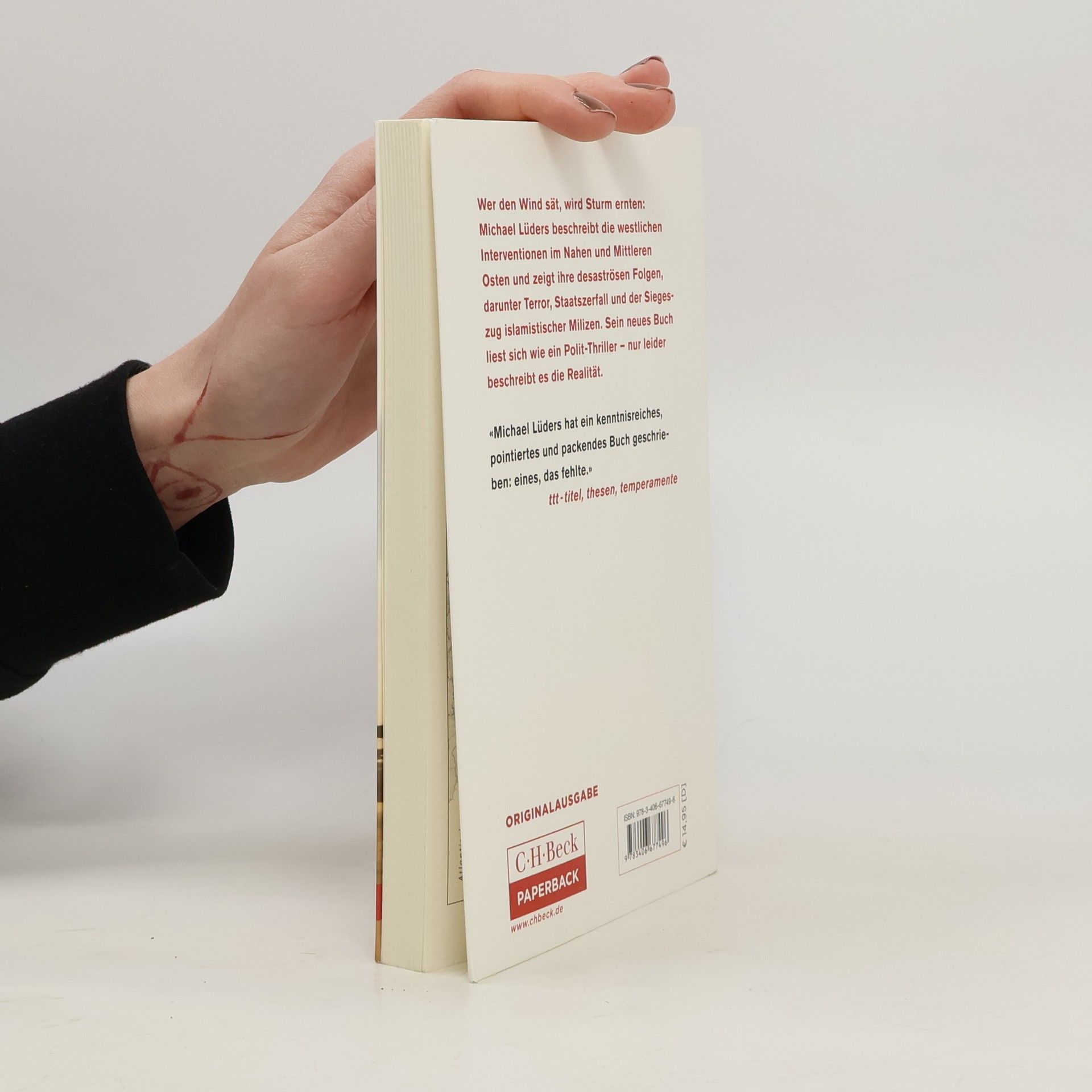 „LIEST SICH WIE EIN POLIT-THRILLER“ BERND SCHEKAUSKI, MDR FIGARO Wer den Wind sät, wird Sturm ernten - Michael Lüders beschreibt die westlichen Interventionen im Nahen und Mittleren Osten seit der Kolonialzeit und erklärt, was sie mit der aktuellen politischen Situation zu tun haben. Sein neues Buch liest sich wie ein Polit-Thriller - nur leider beschreibt es die Realität. Eine Geschichte erscheint in unterschiedlichem Licht, je nachdem, wo man beginnt sie zu erzählen. Und wir sind vergesslich. Das iranische Verhältnis zum Westen versteht nur, wer den von CIA und MI6 eingefädelten Sturz des demokratischen Ministerpräsidenten Mossadegh im Jahr 1953 berücksichtigt. Ohne den Irakkrieg von 2003 und die westliche Politik gegenüber Assad in Syrien lässt sich der Erfolg des „Islamischen Staates“ nicht begreifen. Wer wissen will, wie in der Region alles mit allem zusammenhängt, der greife zu diesem Schwarzbuch der westlichen Politik im Orient. Die verheerenden Folgen westlicher Politik im Orient Geschrieben von einem der besten Kenner