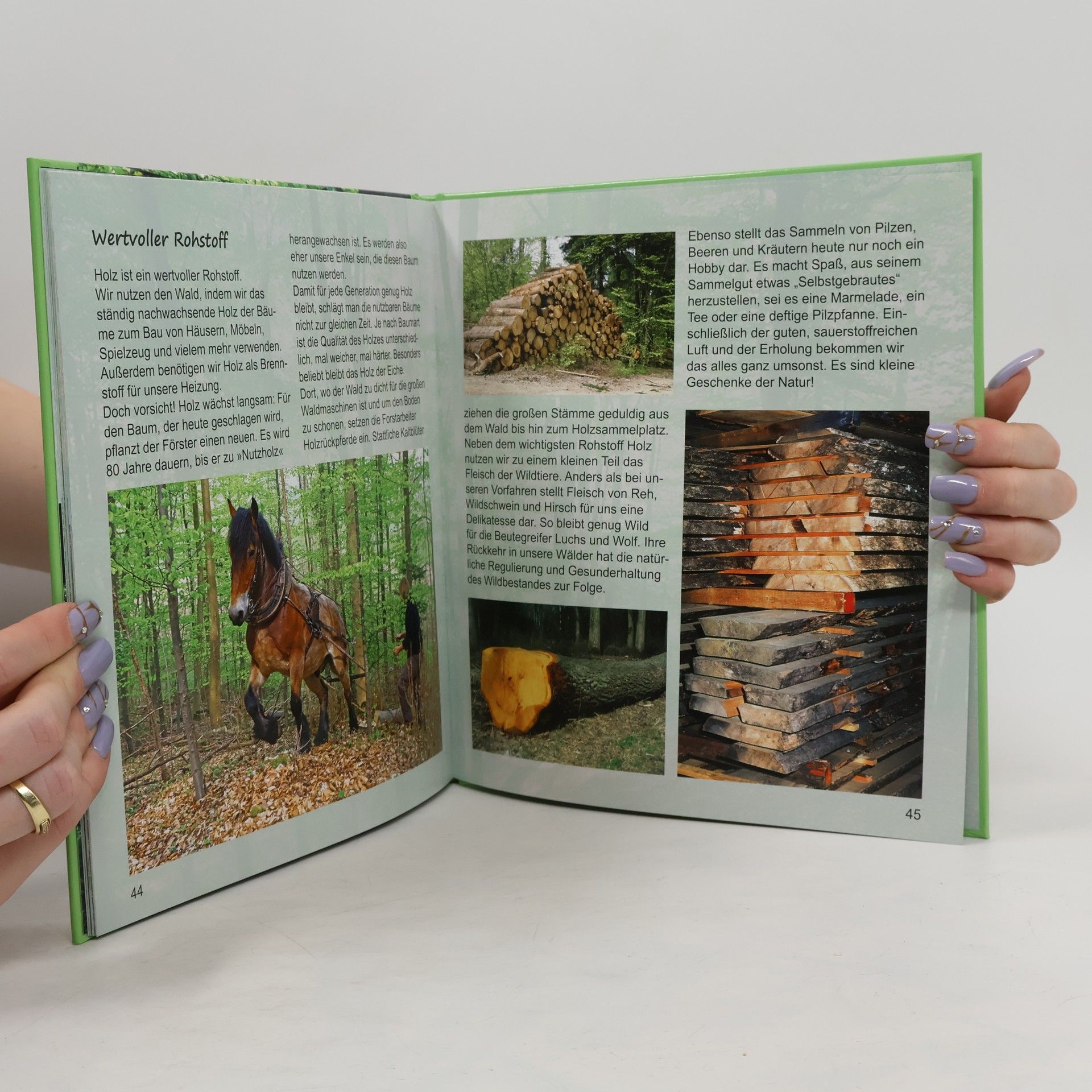 Fotosachbuch über den Wald: Einst Urwald oder Zauberwald, bewohnt von Hexen, Räubern und Waldelfen, verwunschen, spannend und schließlich bedroht – unser Wald, wichtiges Biotop und Erholungsgebiet. Der Wald ist Lebensraum für tausende Tiere und Pflanzen, spannend vom Waldboden bis hoch hinauf zu den Wipfeln. Im Wald gibt es zu allen Jahreszeiten etwas Interessantes zu entdecken. Je tiefer wir in ihn hineinwandern, umso mehr erfahren wir über das Miteinander und die Verteilung der Tiere und Pflanzen in den einzelnen Stockwerken des Waldes. Die zahlreichen anschaulichen, brillanten Farbfotos stellen Kindern und ihren Eltern die Bewohner des Waldes zwanglos vor. Nur wer begreift, wie wichtig ein Biotop und die Gemeinschaft darin ist und die Lebewesen in all ihren Eigenarten respektiert, kann aktiv am Erhalt unserer Umwelt beitragen.