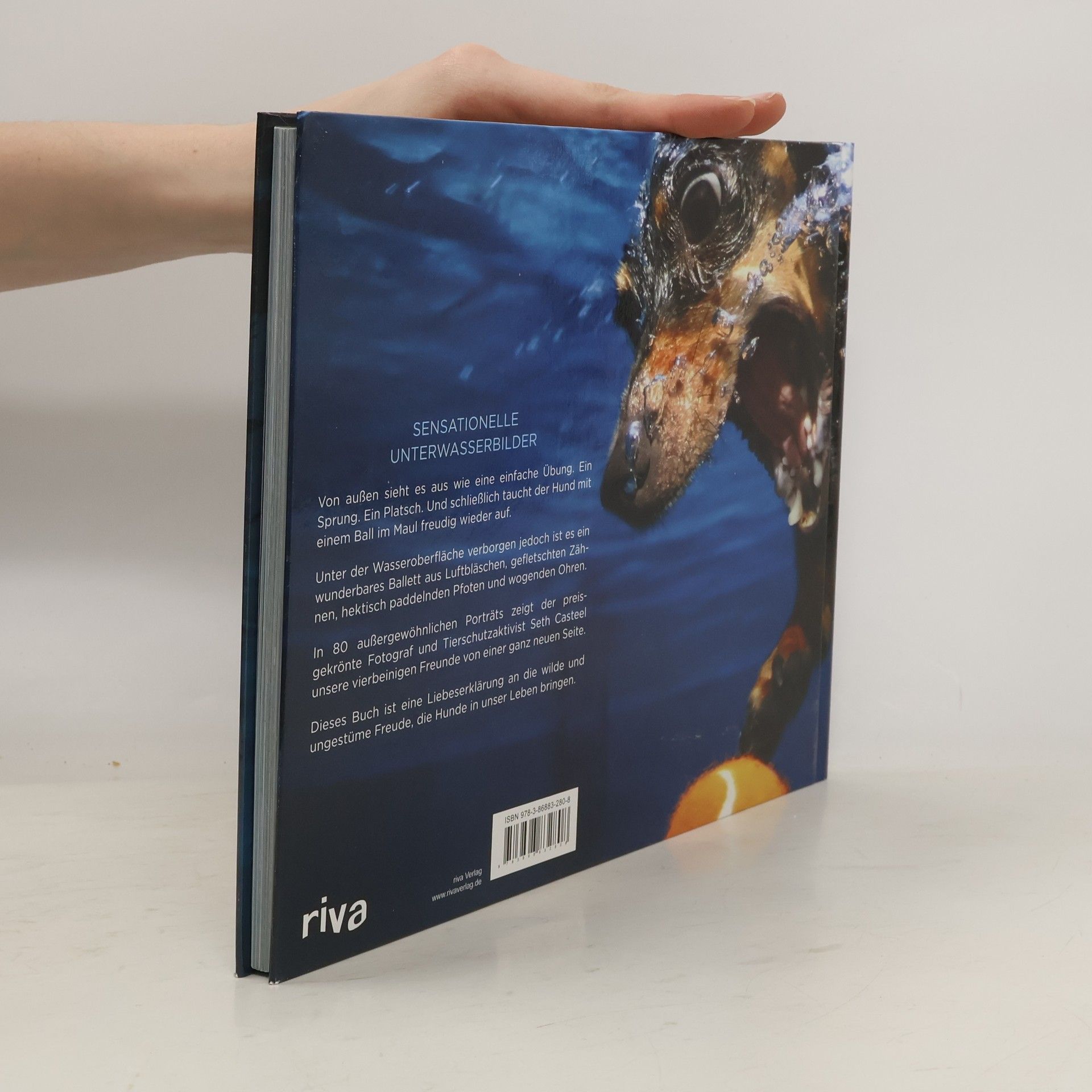 Fesselnde Bilder aus dem Unterwasserleben von Hunden. Der Bildband „Hunde unter Wasser“ zeigt Hunde, wie sie noch nie zuvor porträtiert wurden. Der preisgekrönte Fotograf Seth Casteel verfügt über eine besondere Technik, mit der er Vierbeiner vom Grunde eines Schwimmbades aus fotografieren kann, während diese ins Wasser eintauchen. Die Bilder, die dabei entstehen, bieten spektakuläre Impressionen, der Anblick der Hunde erinnert teilweise an Urzeittiere, Fische, tauchende Babys, …. Vom Labrador, über den Spaniel bis hin zum Border Collie hat Seth Casteel fast jede gängige Hunderasse mit dieser neuartigen Technik abgelichtet. Die 80 außergewöhnlichen, großformatigen Portraits zeigen eine noch nie gesehene Darstellung des ältesten Freundes des Menschen. Der Bildband ist das perfekte Geschenk für jeden Hundefreund und jeden, der sich für Fotografie begeistert.