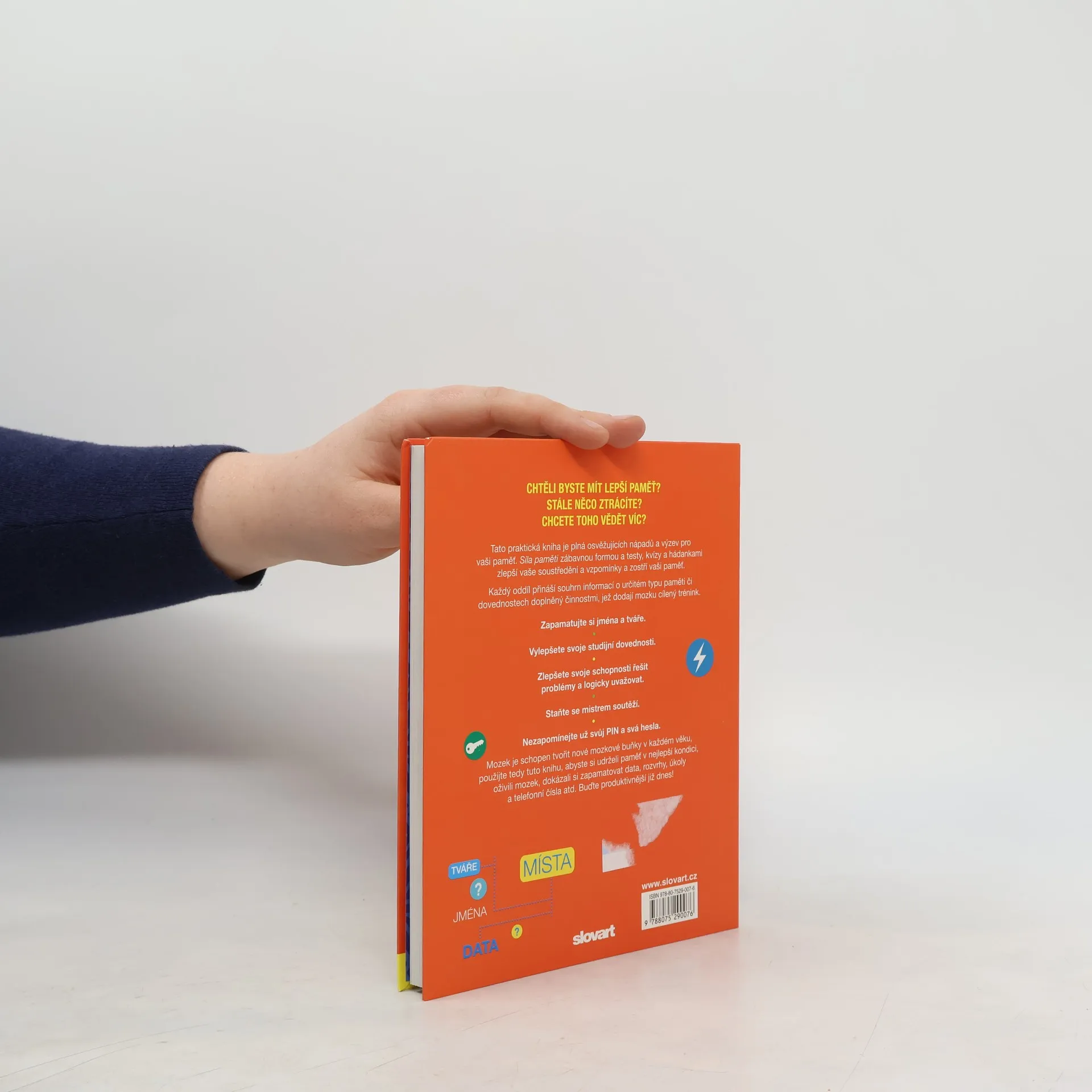 Tato kniha je plná nápadů a úloh, jež mají sloužit k posílení a vylepšení paměti. Zábavným způsobem a pomocí řady rozmanitých úloh pomůže čtenáři, aby si vylepšil koncentraci, vytříbil paměť a zdokonalil schopnost učit se nazpaměť. Každá kapitola přináší kromě zajímavé teorie i praktické aktivity, jejichž pomocí lze paměť trénovat a propracovat se tak k jejímu lepšímu fungování.