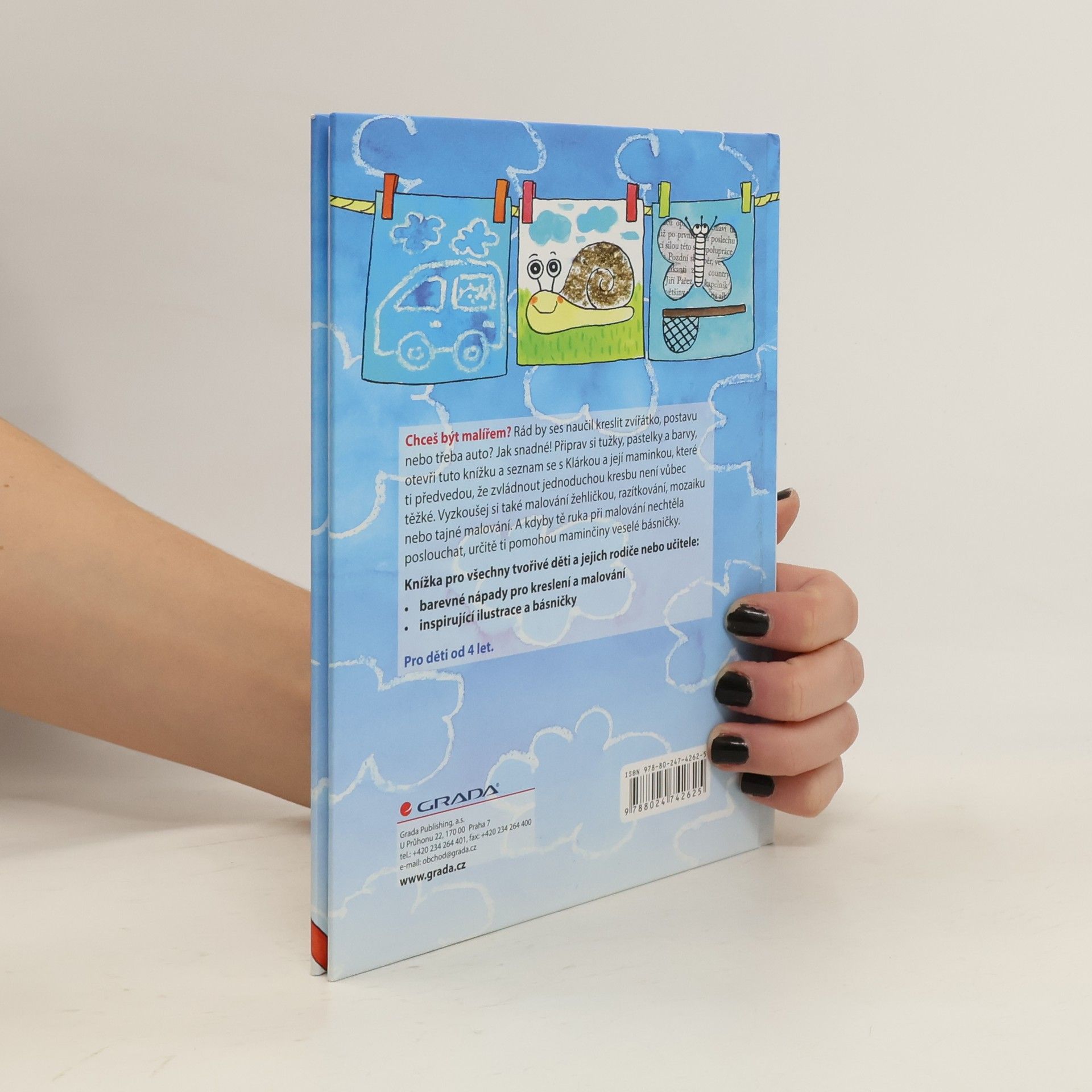 Chceš být malířem? Rád by ses naučil kreslit zvířátko, postavu nebo třeba auto? Jak snadné! Připrav si tužky, pastelky a barvy, otevři tuto knížku a seznam se s Klárkou a její maminkou, které ti předvedou, že zvládnout jednoduchou kresbu není vůbec těžké. Vyzkoušej si také malování žehličkou, razítkování, mozaiku nebo tajné malování. A kdyby tě ruka při malování nechtěla poslouchat, určitě ti pomohou maminčiny veselé básničky.