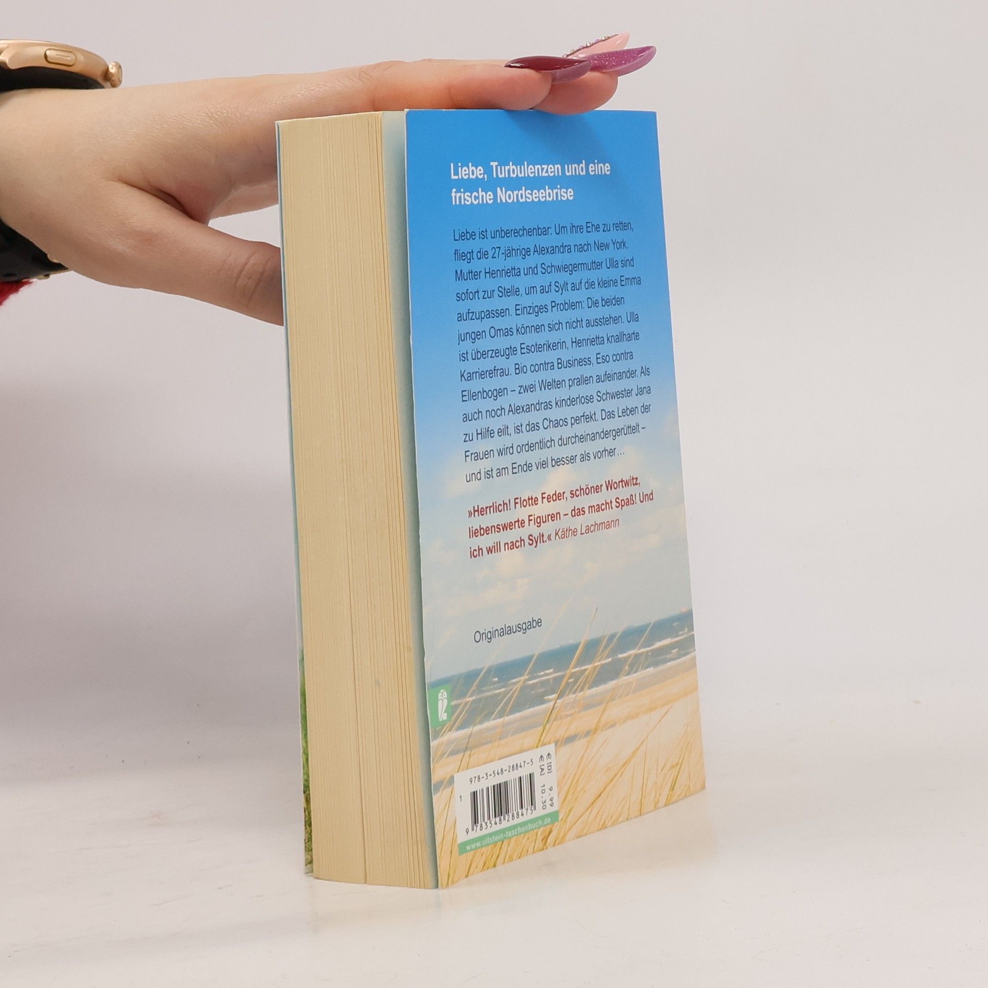 „Köstlich! Mein Kompliment! Vor allem über Oma Ulla habe ich sehr lachen müssen.“ Gisa Pauly Um ihre Ehe zu retten, fliegt die 27-jährige Alexandra nach New York. Mutter Henrietta und Schwiegermutter Ulla sind sofort zur Stelle, um in einem Strandhaus auf Sylt auf die kleine Emma aufzupassen. Dumm nur, dass sich die beiden jungen Omas nicht ausstehen können. Ulla ist überzeugte Esoterikerin, Henrietta knallharte Karrierefrau. Bio contra Business, Eso contra Ellenbogen - zwei Welten prallen aufeinander. Als auch noch Alexandras kinderlose Schwester Jana zu Hilfe eilt, ist das Chaos perfekt. Das Leben der Frauen wird ordentlich durcheinandergerüttelt - und ist am Ende viel besser als vorher ... „Herrlich! Flotte Feder, schöner Wortwitz, liebenswerte Figuren – macht Spaß! Und ich will nach Sylt …“ Käthe Lachmann, Autorin und Komikerin „Lustig, fesselnd, klug und sehr gut beobachtet. Claudia Thesenfitz hat die Formel für den perfekten Frauenroman gefunden.“ Wiebke Lorenz