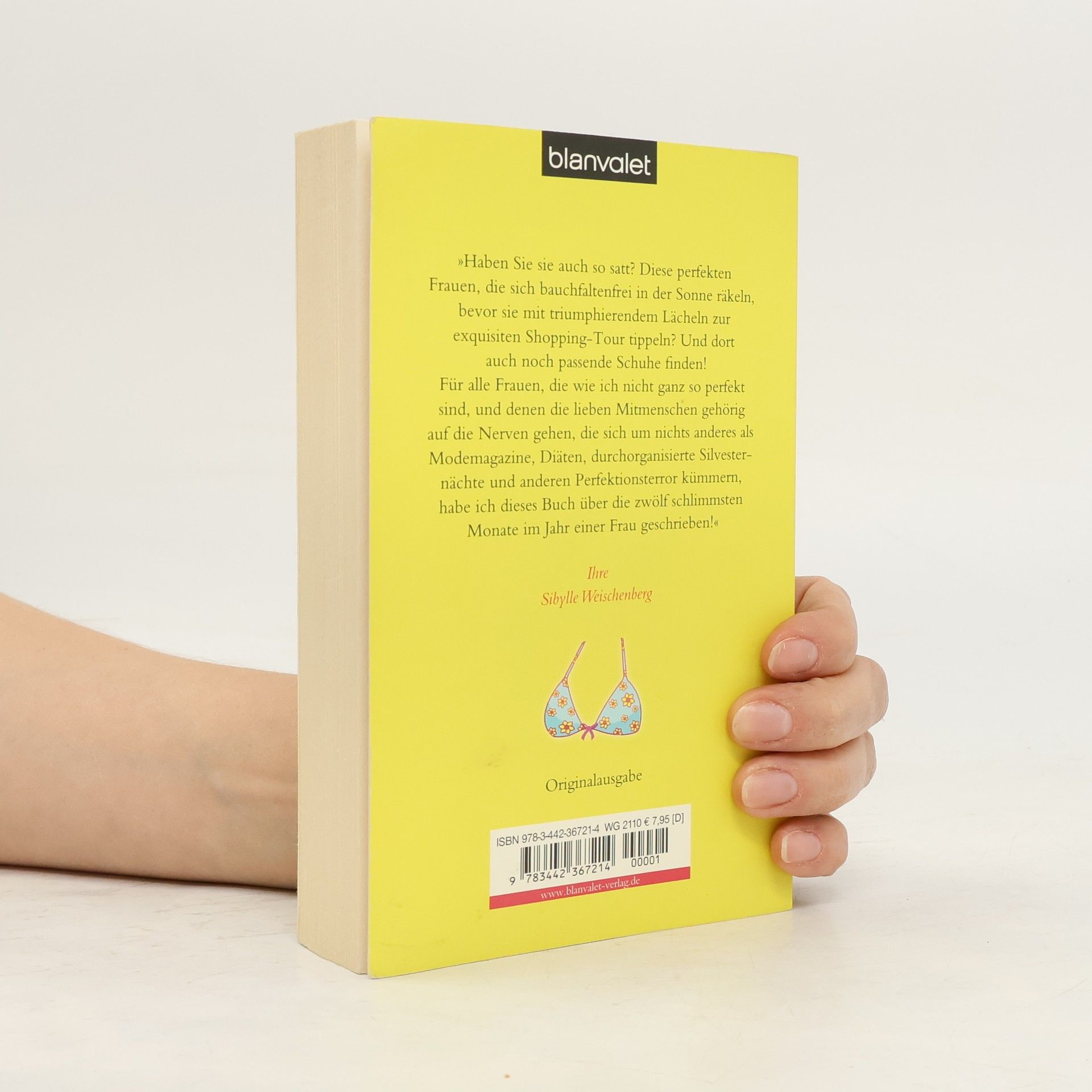 Die 12 schlimmsten Monate im Jahr einer Frau - Freche Geschichten für die nicht-perfekte Frau! „Haben Sie sie auch so satt? Diese perfekten Frauen, die sich bauchfaltenfrei in der Sonne räkeln, bevor sie mit triumphierenden Lächeln zur exquisiten Shopping-Tour tippeln? Und dort auch noch passende Schuhe finden! Für alle Frauen, die wie ich nicht ganz so perfekt sind, und denen die lieben Mitmenschen gehörig auf die Nerven gehen, die sich um nichts anderes als Modemagazine, Diäten, durchorganisierte Silvesternächte und anderen Perfektionsterror kümmern, habe ich dieses Buch über die 12 schlimmsten Monate im Jahr einer Frau geschrieben!“ Ihre Sibylle Weischenberg