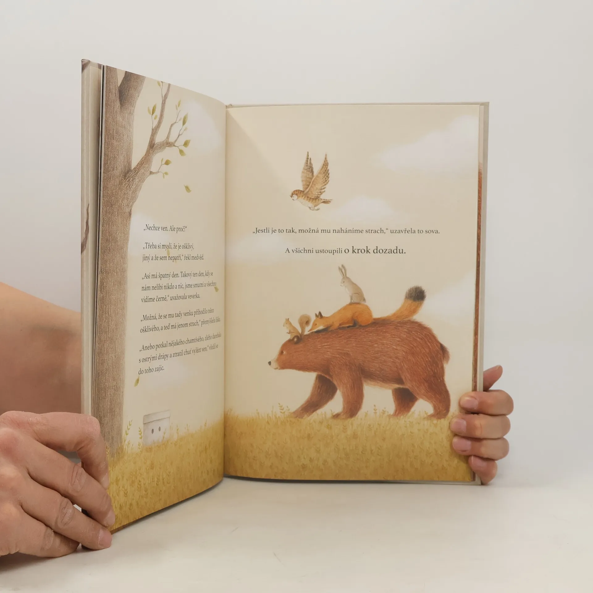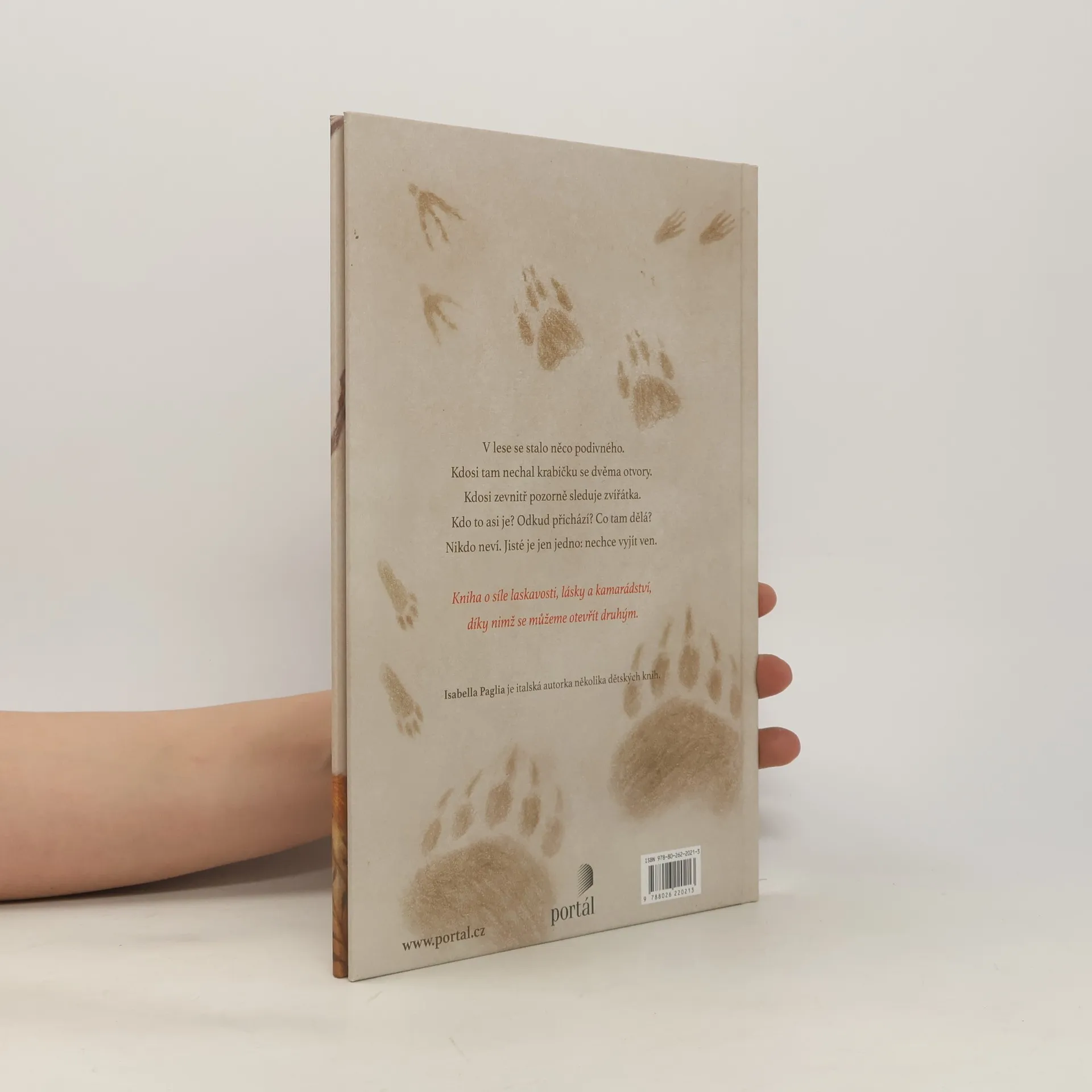 V lese se najednou objevila krabička. Na jedné straně má dvě dírky a nikdo neví, jak se tam ocitla. Všechna zvířátka přemýšlejí o tom, proč se objevila právě v lese, nikdo ale nezná odpověď. Jedno je ale jisté: ať je tam kdokoli nebo cokoli, rozhodně nechce z krabičky ven. Půvabná knížka o tom, že na světě nejvíc potřebujeme kamarády, osloví děti od pěti let.