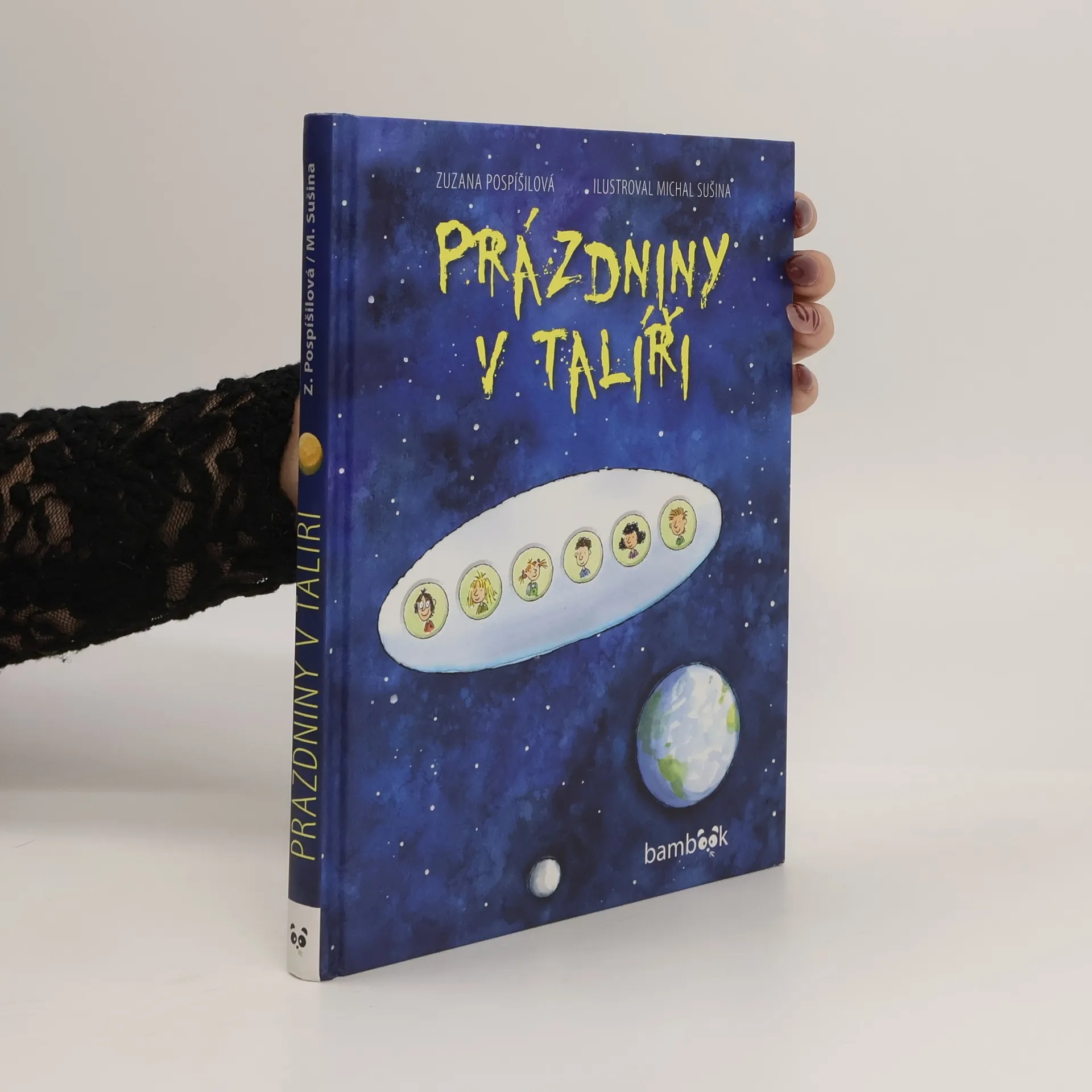 Tak tohle nebudou obyčejné prázdniny. Žádné povalovaní u babičky, túry po horách, dokonce ani výlet k moři. Letí se do vesmíru! Procestujte s Barčou, Filipem a jejich kamarády sluneční soustavu. Čeká vás pátrání po skrytém létajícím talíři, seznámení se záhadnými mimozemšťany, ale hlavně napínavý příběh. Když se parta kamarádů zabydlí v nové klubovně, jednoho letního večera je ohromí tajemné světelné záblesky od protějšího kopce. Vznášející se světlo připomíná létající talíř. Příliš neuvěřitelné? Prozkoumat záhadu podivných paprsků bude pro tyto prázdniny úkol číslo jedna. Pátrání zavede kamarády do skal, do podzemí a nakonec i do tak vzdálených dimenzí, že je to těžko k uvěření. Prožijte nové vesmírné dobrodružství a užijte si vtipné ilustrace. Další příběh oblíbené autorky Zuzany Pospíšilové volně navazuje na předchozí tituly Uf, oni přistáli a Vesmírné kameny, skvělými ilustracemi ho opět doprovodil Michal Sušina.
