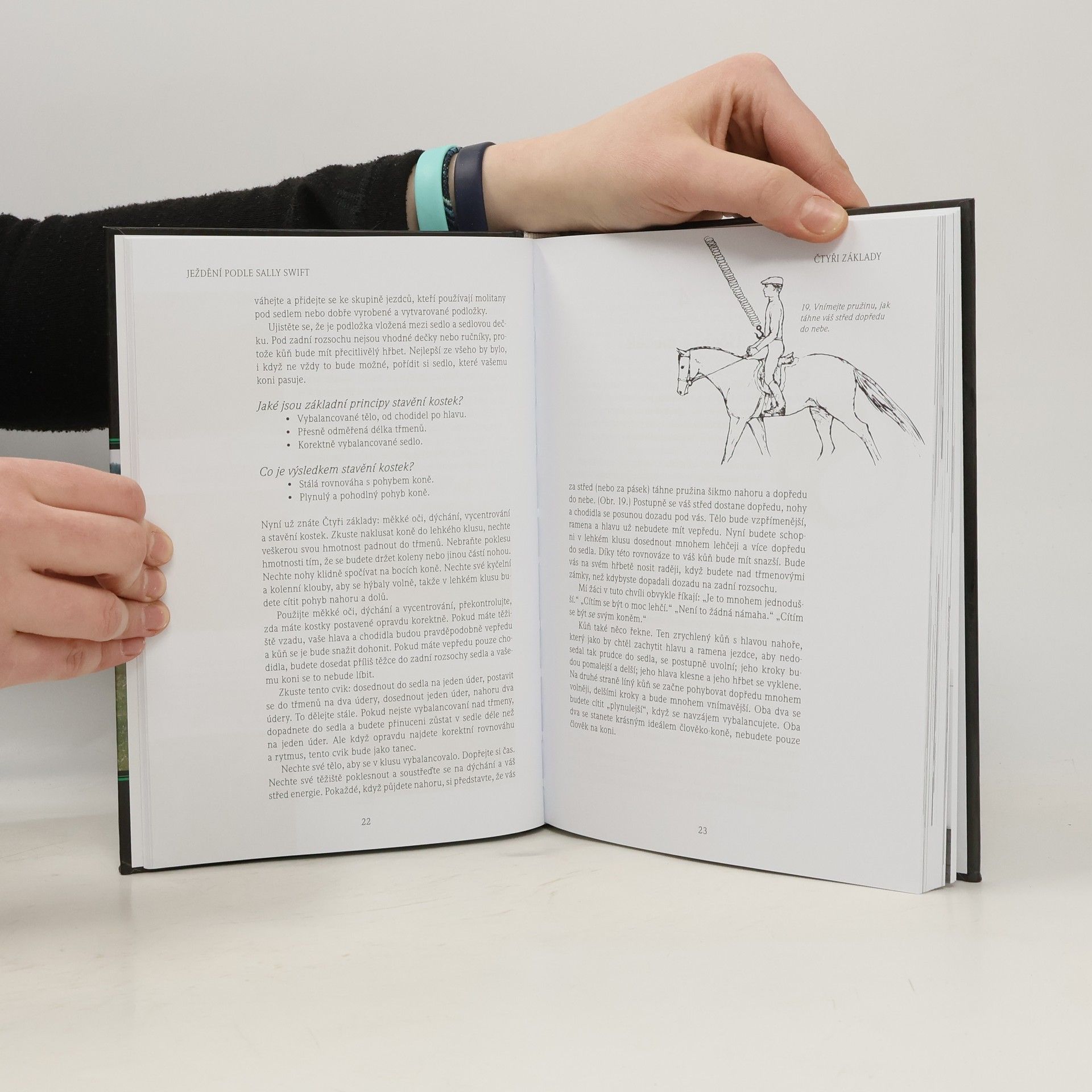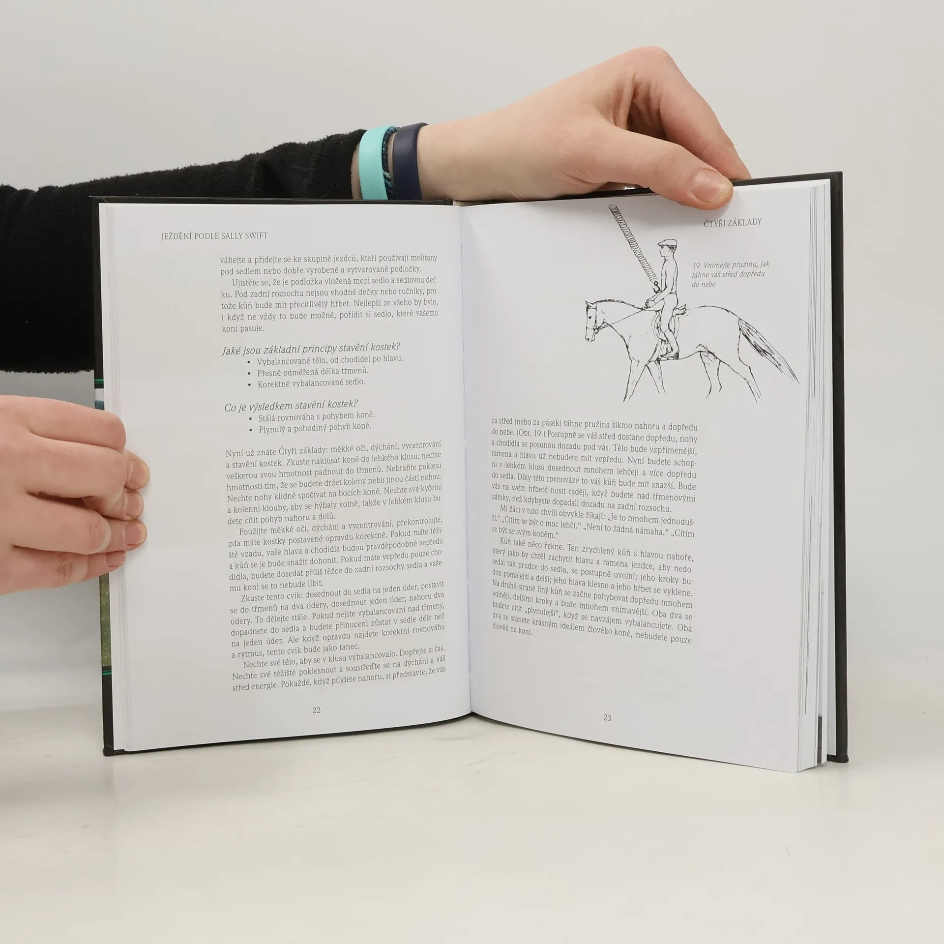 Převratná výuková filozofie ježdění na koni, zdůrazňující uvědomování si těla, význam „měkkých očí, správného dýchání, centrování a rovnováhy. Autorka byla půl století průkopníkem mezi instruktory jezdectví. V této knize, která vyšla v mnoha jazycích, poprvé formulovala své metody, které umožní koni i jezdci dosáhnout harmonie, pracovat společně, přirozeně a bez bolesti. Spoléhá na živé, neobvyklé, vysoce kreativní a ověřené představy a znalosti anatomie člověka a koně, které jezdcům umožní jezdit s přirozeným držením těla. Kniha je určena mírně pokročilým jezdcům i těm, kteří již postoupili k nejvyšším stupňům.