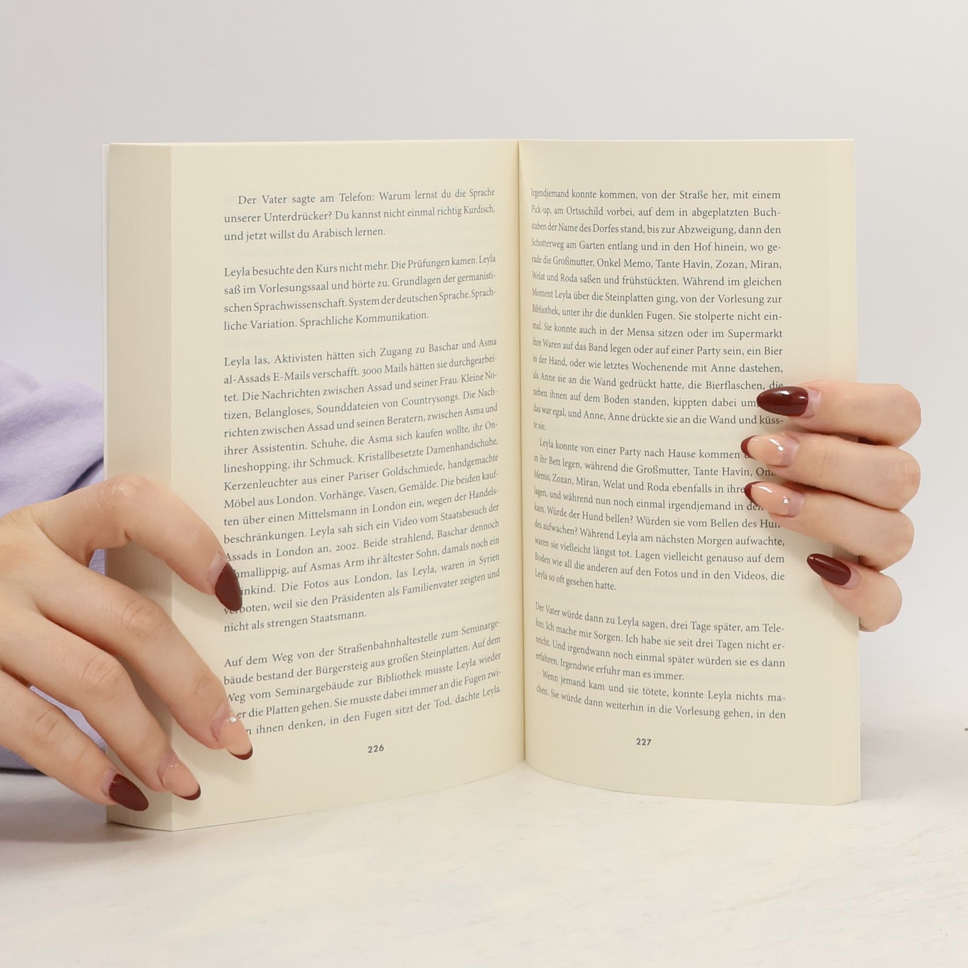 Über eine zerrissene Welt, voller Zärtlichkeit und Wut Das Dorf liegt in Nordsyrien, nahe zur Türkei. Jeden Sommer verbringt Leyla dort. Sie riecht und schmeckt es. Sie kennt seine Geschichten. Sie weiß, wo die Koffer versteckt sind, wenn die Bewohner wieder fliehen müssen. Leyla ist Tochter einer Deutschen und eines jesidischen Kurden. Sie sitzt in ihrem Gymnasium bei München und in allen Sommerferien auf dem Erdboden im jesidischen Dorf ihrer Großeltern. Im Internet sieht sie das von Assad vernichtete Aleppo, die Ermordung der Jesiden durch den IS und gleich daneben die unbekümmerten Fotos ihrer deutschen Freunde. Leyla wird eine Entscheidung treffen müssen.