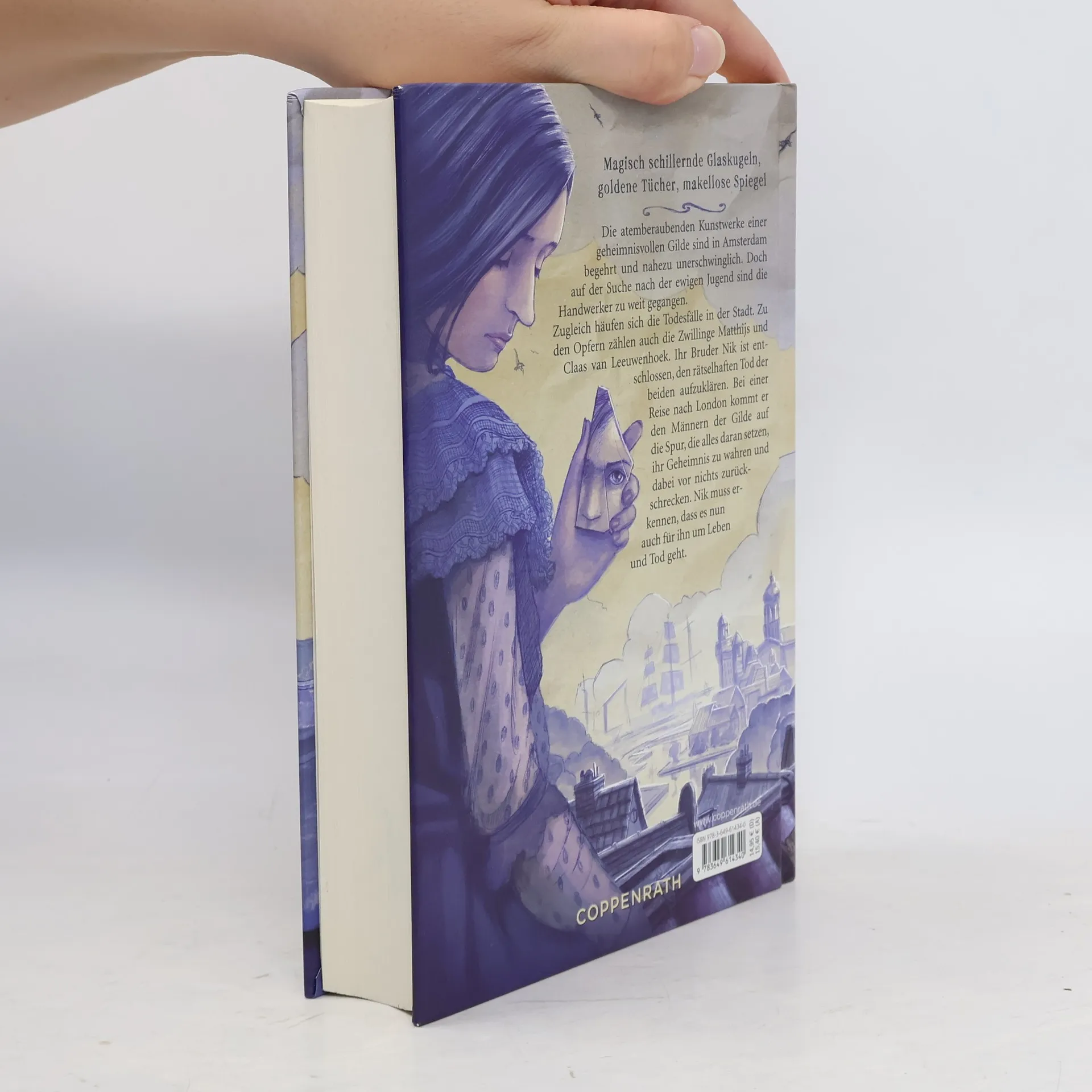Magisch schillernde Glaskugeln, goldene Tücher, makellose Spiegel – die atemberaubenden Kunstwerke einer geheimnisvollen Gilde sind in Amsterdam begehrt und nahezu unerschwinglich. Doch auf der Suche nach der ewigen Jugend sind die Handwerker zu weit gegangen. Zugleich häufen sich die mysteriösen Todesfälle in der Stadt. Zu den Opfern zählen auch die Zwillingsbrüder Matthijs und Claas van Leeuwenhoek und ihr älterer Bruder Nik ist wild entschlossen, den rätselhaften Tod der beiden aufzuklären. Bei einer Reise nach London kommt er den skrupellosen Männern der Gilde endlich auf die Spur, die alles daran setzen, ihr Geheimnis zu wahren und dabei vor nichts zurückschrecken. Eine wilde Jagd beginnt und Nik muss erkennen, dass es plötzlich auch für ihn um Leben und Tod geht.