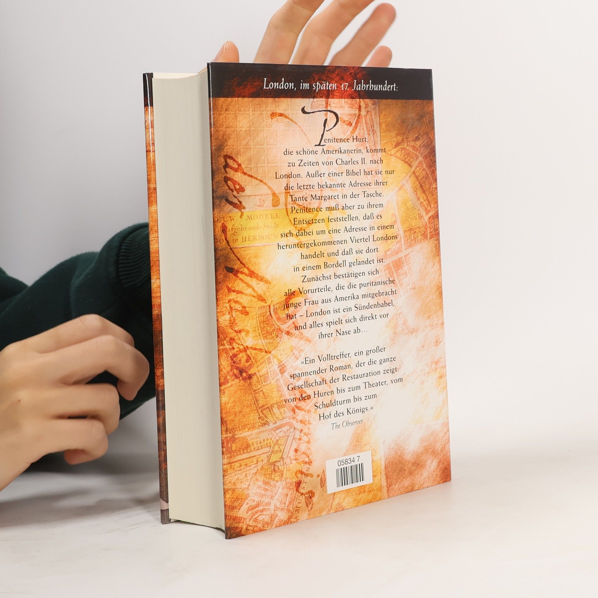 'Penitence und die Pest trafen am selben Tag in London ein.' So beginnt die Geschichte der schönen jungen Amerikanerin, die zur Zeit von Charles II. nach London kommt. Außer einer Bibel hat sie nur die zuletzt bekannte Adresse ihrer Tante Margaret in der Tasche. Sie muß aber zu ihrem Entsetzen feststellen, daß es sich bei diesem Haus um ein Bordell in einem heruntergekommenen Viertel von London handelt. Nachdem die Pest über London hereingebrochen ist, ändert sich ihr Blick auf die Welt. Sie wird Zeugin, mit welchem Mut gerade die armen Leute der Seuche entgegentreten. Als sie Aphra Behn, die berühmte exzentrische Bühnenautorin und Spionin des Königs, im Schuldturm kennenlernt, nimmt ihr Schicksal eine Wendung: sie wird Schauspielerin und kämpft nun wie Aphra darum, ein freies, selbstbestimmtes Leben führen zu können. Als es eine Rebellion gegen den König gibt, geht es nur noch darum zu überleben.
