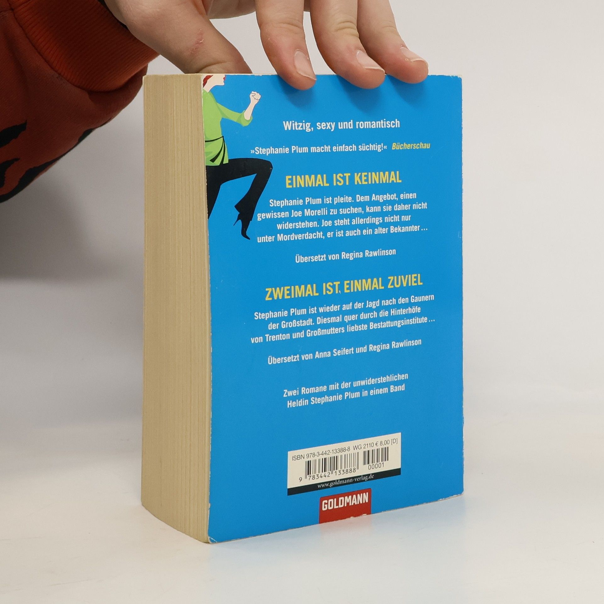 Two in one „Einmal ist keinmal“ Stephanie Plum ist jung, selbstbewusst und voller hochfliegender Pläne. Und sie ist pleite. Als sie das Angebot erhält, für 100.000 Dollar einen gewissen Joe Morelli ausfindig zu machen, sagt sie daher nicht nein. Joe steht allerdings nicht nur unter Mordverdacht, er ist auch ein alter Bekannter Stephanies. Die beiden kennen sich seit ihren Kindertagen, und eigentlich wollte Stephanie die Finger von ihm lassen. Aber was sind gute Vorsätze gegen die Macht der Gefühle? „Zweimal ist einmal zuviel“ Nichts beschwingt den Gang eines Mädchens mehr, als eine Pistole in ihrer Handtasche. Stephanie Plum ist wieder auf der Jagd nach den Gaunern der Großstadt. Zwei Fälle beschäftigen sie gerade: das Verschwinden des Angeklagten Kenny Mancuso und ein Fall von Sargdiebstahl. Gemeinsam mit Grandma Mazur - die alte Dame genießt Beerdigungen wie andere Leute Sahnetorten - macht sie sich auf die Suche - quer durch die Hinterhöfe Trentons und Omas liebste Beerdigungsunternehmen.