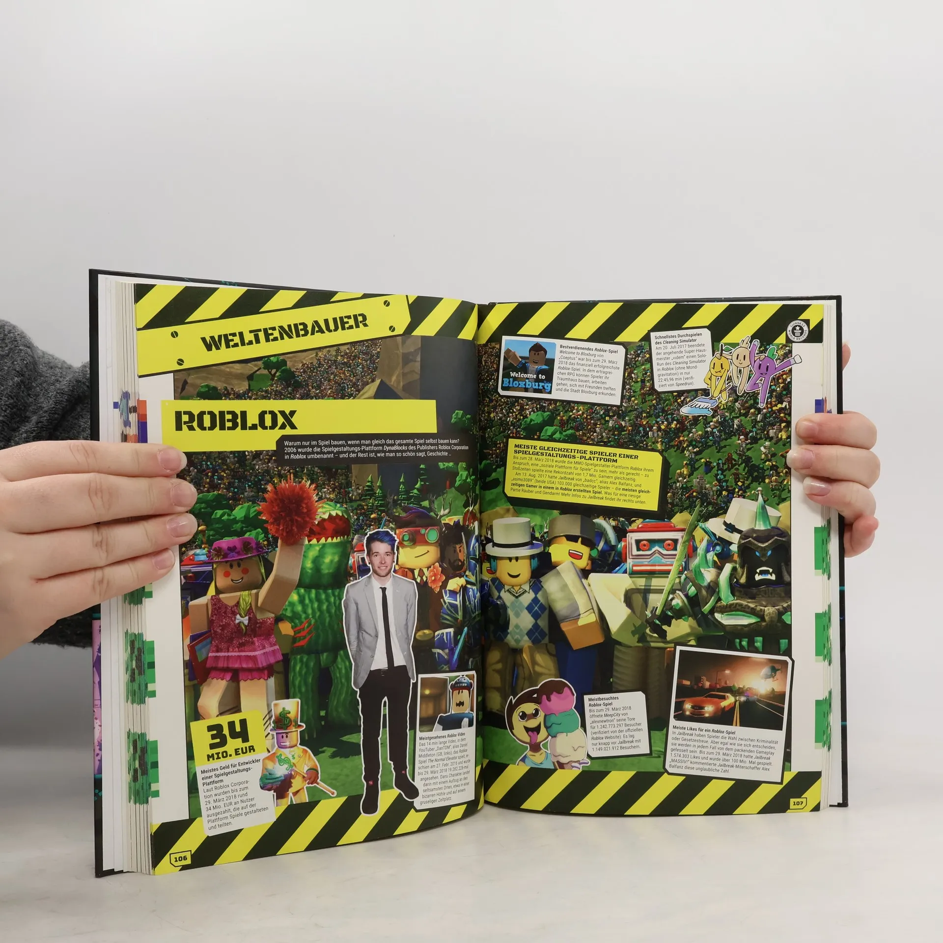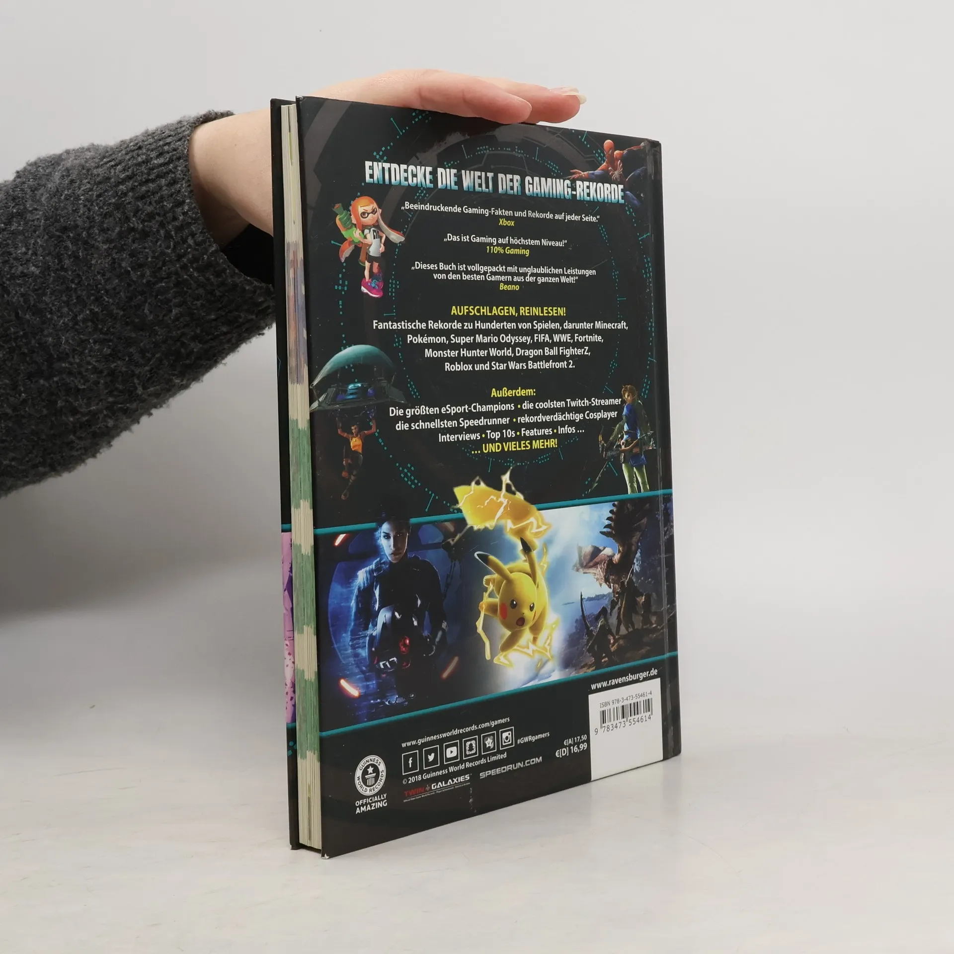 Die GUINNESS WORLD RECORDS Gamer’s Edition 2019 ist die globale Autorität für Videospiele und bietet in ihrer 12. Ausgabe eine Fülle von Rekorden, beeindruckenden Leistungen und Errungenschaften leidenschaftlicher Gamer. Tauche ein in deine Lieblingsspiele, von Klassikern wie FIFA, Overwatch und Super Mario bis hin zu modernen Hits wie Monster Hunter: World und NieR: Automata. Entdecke, wer der beste FIFA 18-Spieler ist, die Größe des größten Monsters in Monster Hunter: World und welcher eSport-Profi 2017 über 2 Millionen EUR gewann. Lerne außergewöhnliche Gamer kennen, darunter Nathaniel „Nathie” de Jong, den beliebtesten VR-YouTuber, und Ray „Stallion83” Cox, den höchsten Xbox-Gamerscore-Inhaber. Joseph Garrett (Stampy Cat) präsentiert ein exklusives Vorwort und einen der skurrilsten Minecraft-Rekorde, der einen Kuchen in den Mittelpunkt stellt. Das exklusive Weltenbauer-Kapitel würdigt Spiele wie Minecraft, LEGO® Worlds und Roblox, die es uns ermöglichen, eigene Welten zu erschaffen. Nimm an der Leser-Challenge teil und vielleicht steht dein Name im nächsten Jahr in der Gamer’s Edition. Finde heraus, wer Dark Souls am schnellsten durchgespielt hat, wie das größte Game & Watch-Spiel aussieht und aus welchem Land die besten Pokémon-Spieler stammen. Hier gibt es mehr Spiele, als du dir vorstellen kannst!