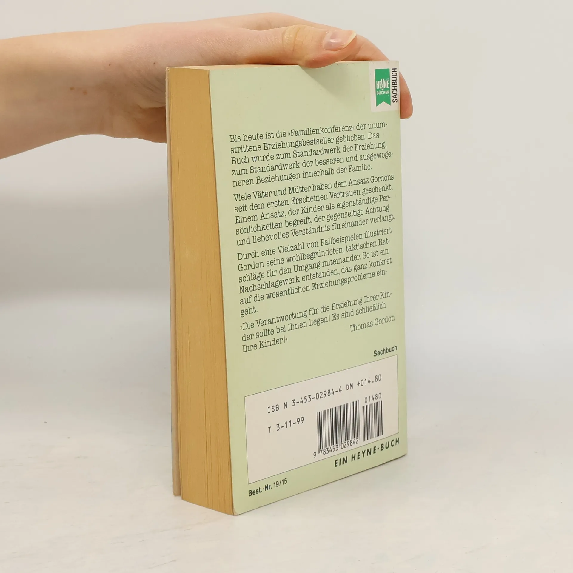 Thomas Gordons Elternratgeber ist längst zu einem Standardwerk für viele Väter und Mütter geworden, die sich um ein entspanntes offenes Verhältnis zu ihren Kindern bemühen, das sich auf gegenseitige Achtung und liebevolles Verständnis füreinander gründet. Die Vielzahl seiner Fallbeispiele, seine wohlbegründeten taktischen Ratschlägen für den Umgang miteinander machen dieses Buch zu einem Nachschlagwerk, das sehr konkret auf die wesentlichen Erziehungsprobleme eingeht.