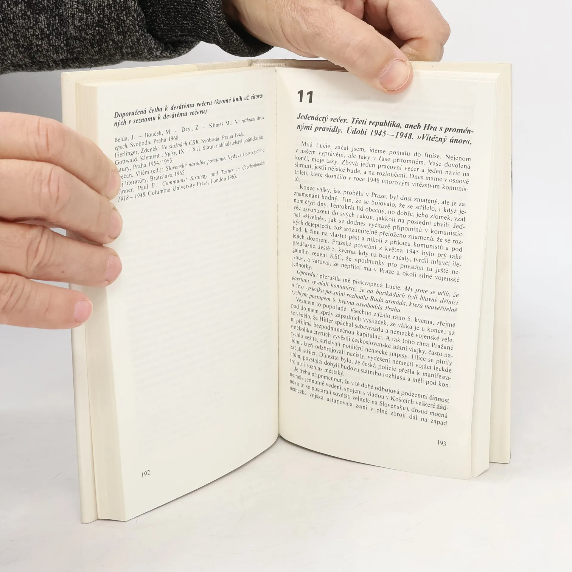 Kniha je záznamem fiktivního rozhovoru vypravěče s mladou ženou Lucií, kteří náhodou tráví současně dovolenou na pobřeží Jaderského moře na severu Jugoslávie. Lucie otevřeně vyslovuje svoji nespokojenost se situací ve svém domově – v Československu zasaženém normalizací; váhá, zda se má z dovolené vrátit do šedivé reality všedního života do Prahy nebo zda má emigrovat. Vypravěč (s nímž se autor ztotožňuje) žije v exilu v Paříži a vzhledem k přístupu ke svobodným informacím bez cenzury a také díky svému vyššímu věku má větší přehled o historii. Místo jednoznačné odpovědi, která by pomohla vyřešit její dilema, proto Lucii nabídne, že jí bude každý večer vysvětlovat svůj pohled nejen na dějiny Československa, ale i komunismu v Sovětském svazu a v ostatních státech východního bloku. 2. vydání, v Odeonu 1.