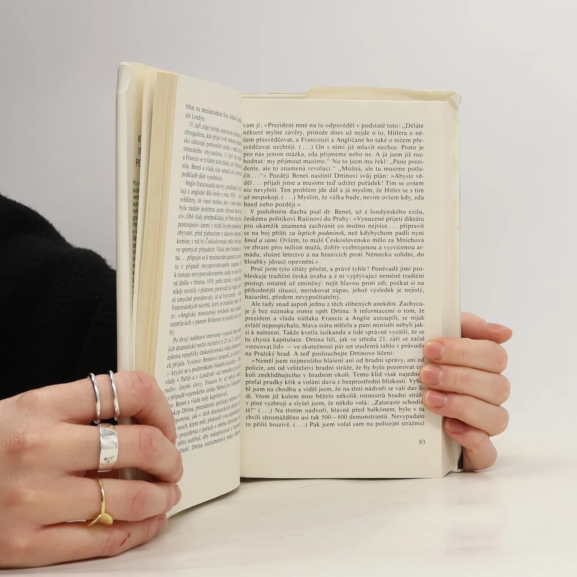 Kniha je záznamem fiktivního rozhovoru vypravěče s mladou ženou Lucií, kteří náhodou tráví současně dovolenou na pobřeží Jaderského moře na severu Jugoslávie. Lucie otevřeně vyslovuje svoji nespokojenost se situací ve svém domově – v Československu zasaženém normalizací; váhá, zda se má z dovolené vrátit do šedivé reality všedního života do Prahy nebo zda má emigrovat. Vypravěč (s nímž se autor ztotožňuje) žije v exilu v Paříži a vzhledem k přístupu ke svobodným informacím bez cenzury a také díky svému vyššímu věku má větší přehled o historii. Místo jednoznačné odpovědi, která by pomohla vyřešit její dilema, proto Lucii nabídne, že jí bude každý večer vysvětlovat svůj pohled nejen na dějiny Československa, ale i komunismu v Sovětském svazu a v ostatních státech východního bloku. 2. vydání, v Odeonu 1.
