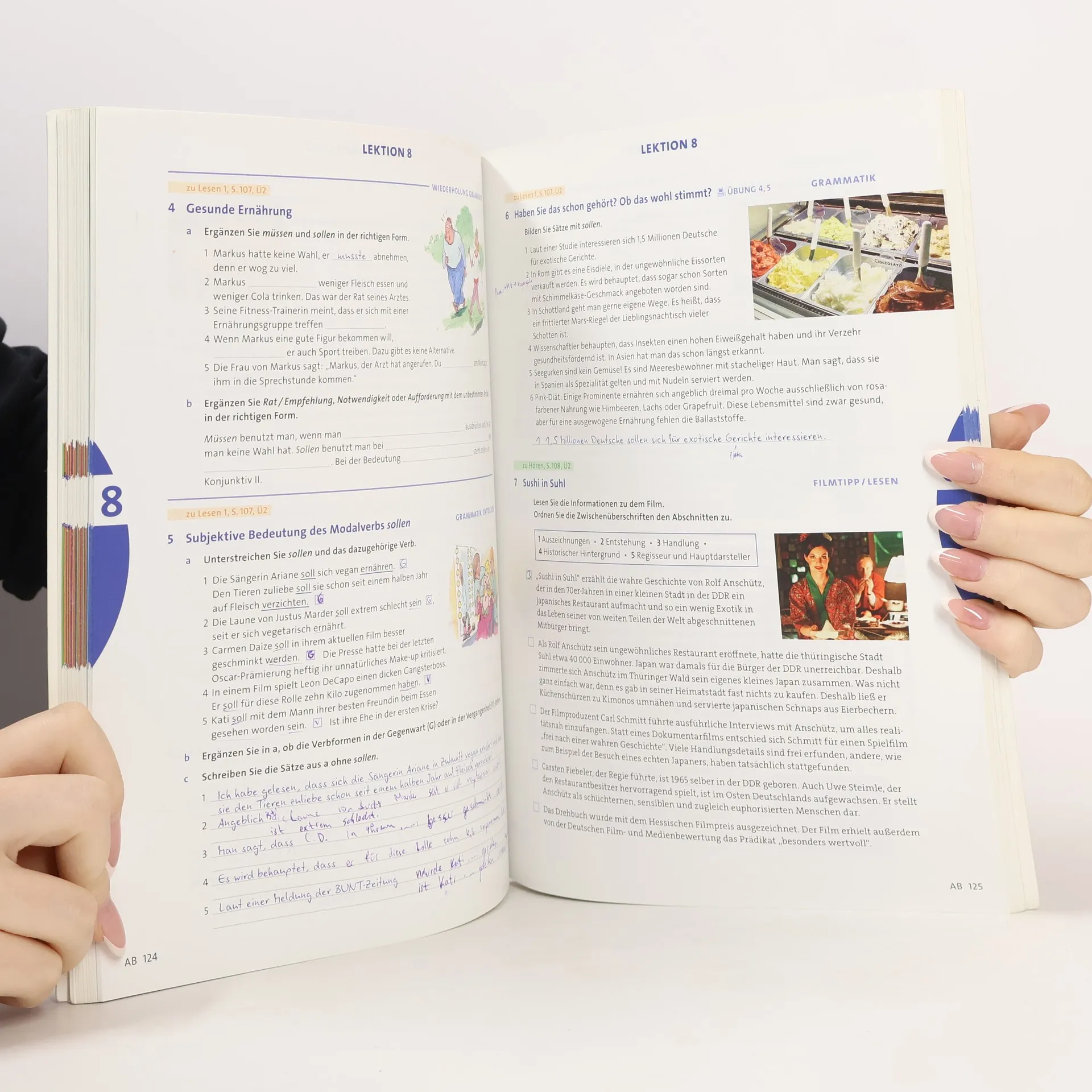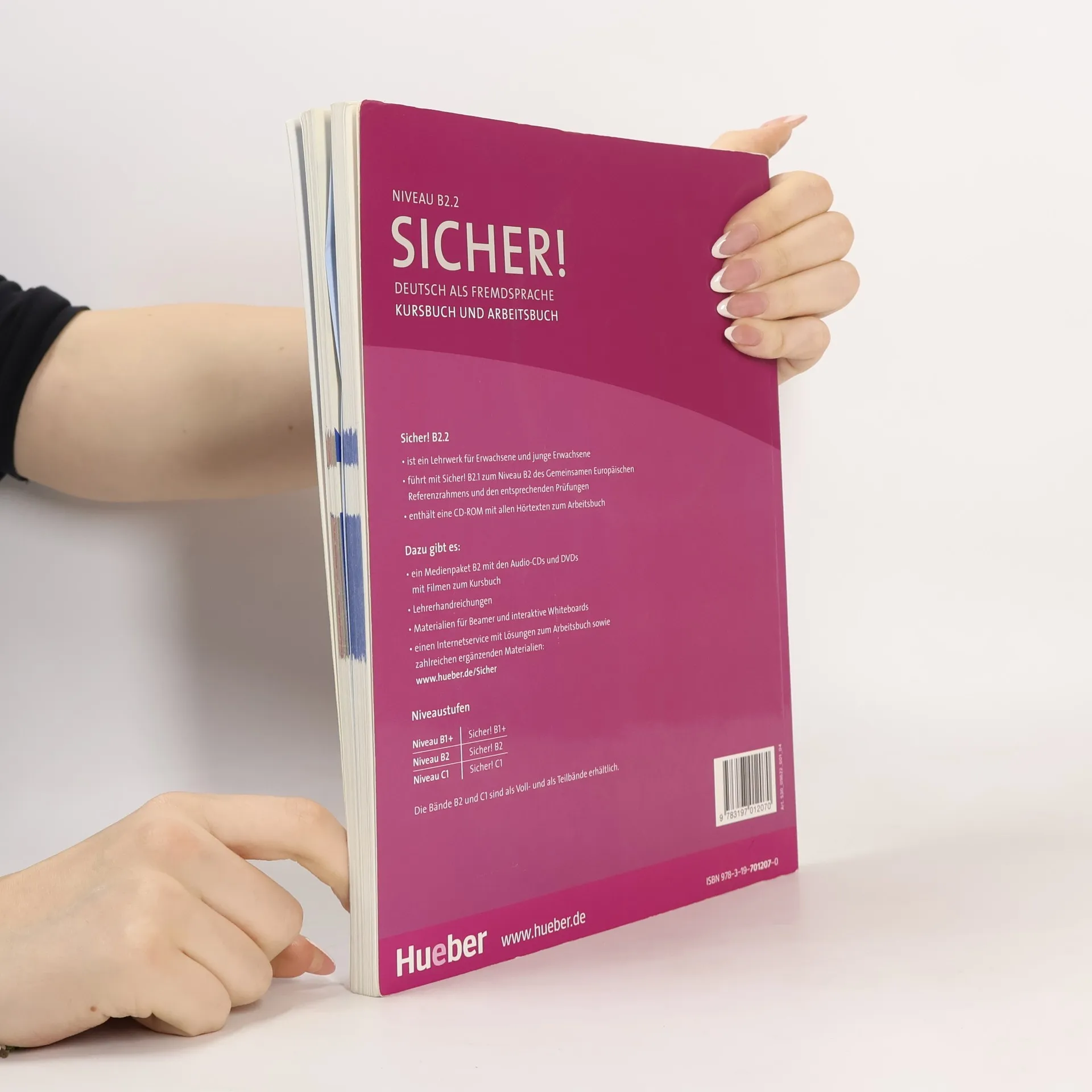 Zielniveau B2.2 Kursbuchteil: - transparenter Aufbau - trainiert die vier Grundfertigkeiten sowie „Sehen und Hören“, „Wortschatz“ und „Grammatik“ - Checkliste zur Lernzielkontrolle am Ende jedes Bausteins - interessante Themen aus den Bereichen Alltag, Beruf, Studium und Ausbildung - abwechslungsreiche und fundierte Aufgaben- und Übungstypologie - Vermittlung von Lernstrategien durch gezielte Aufgabenstellungen und praxisnahe Tipps - Infos zur Landeskunde Arbeitsbuchteil: - vertiefende Übungen zu Wortschatz, Grammatik und allen Fertigkeiten - zu Beginn jeder Lektion Wiederholung wichtiger Wortfelder aus den vorhergehenden Stufen - Vorentlastung komplexer Grammatikthemen durch wiederholende Aufgaben - Selbsttest am Ende jeder Lektion