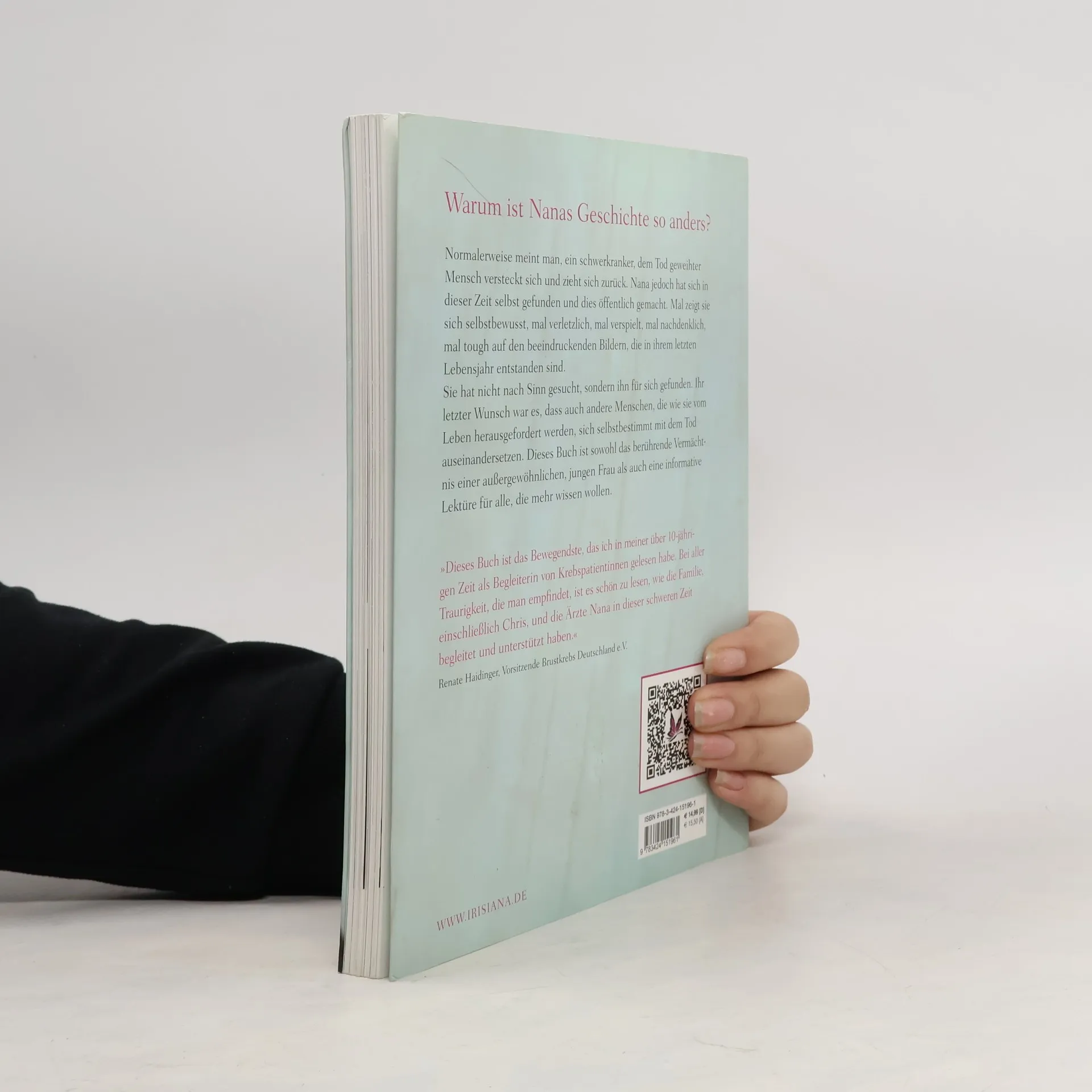 Das Vermächtnis einer jungen Frau: selbstbestimmt die Krankheit und den Tod leben Warum ist Nanas Geschichte so anders? Normalerweise meint man, ein schwerkranker, dem Tod geweihter Mensch versteckt sich und zieht sich zurück. Nana jedoch hat sich in dieser Zeit selbst gefunden und dies öffentlich gemacht. Mal zeigt sie sich selbstbewusst, mal verletztlich, mal verspielt, mal nachdenklich, mal tough auf den beeindruckenden Bildern, die in ihrem letzten Lebensjahr entstanden sind. Zuerst waren es private Fotos bis sie sich traute, professionellen Fotografen Modell zu stehen. Aus den Bildern hat Nana Kraft geschöpft. Und so entstand ihre Idee, dies auch anderen Patienten zu ermöglichen. Der von ihren Eltern Axel und Barbara Stäcker gegründete Verein Nana - Recover your smile e. V. ist Nanas Vermächtnis. Nana. der Tod trägt Pink ist ein Buch, das berühren will und auf seine besondere, lebensbejahende Art allen Hilfe und Trost ist, die wie Nana und ihre Angehörigen vom Leben herausgefordert werden.