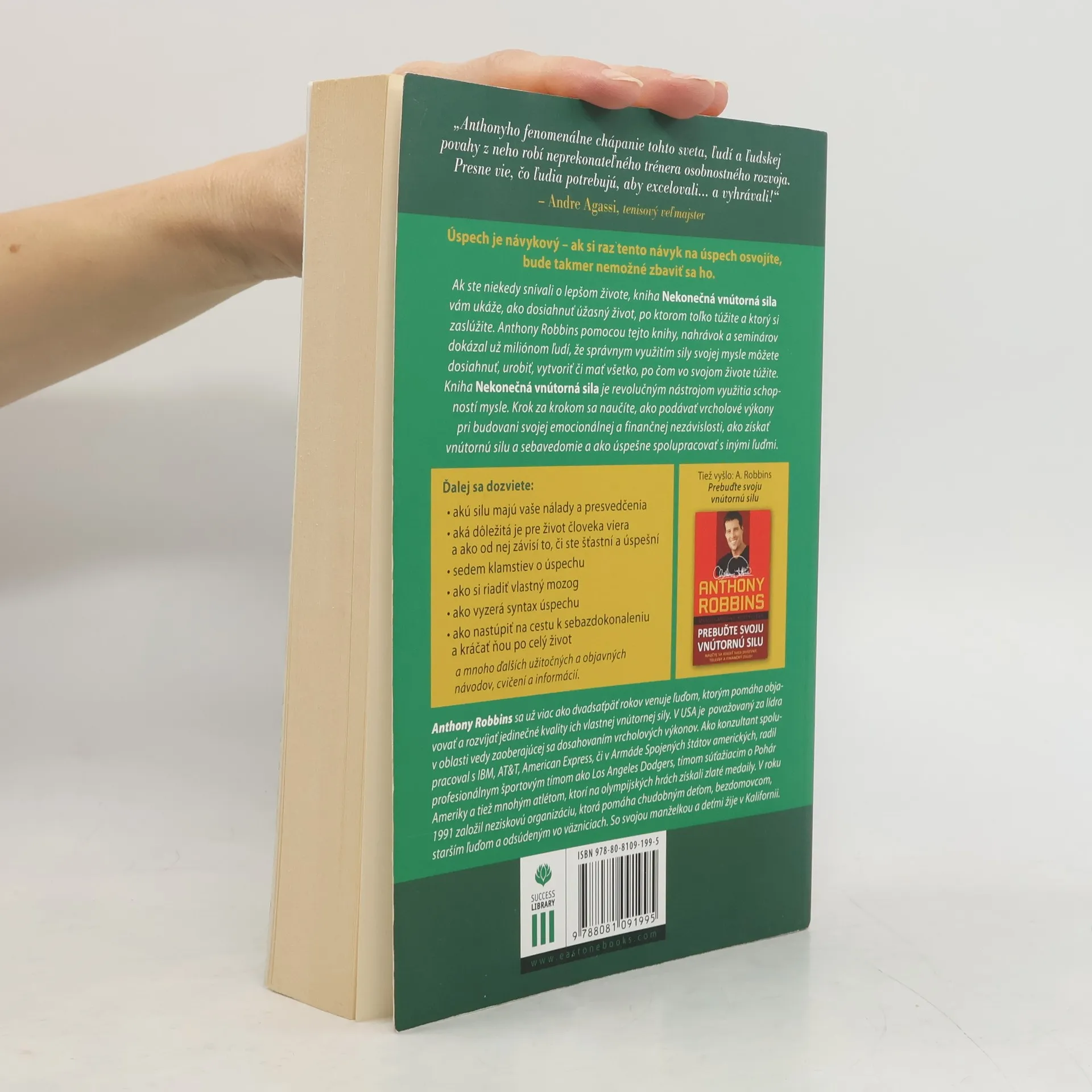 Ak ste niekedy snívali o lepšom živote, kniha Nekonečná vnútorná sila vám ukáže, ako dosiahnuť úžasný život, po ktorom toľko túžite a ktorý si zaslúžite. Anthony Robbins pomocou tejto knihy, nahrávok a seminárov dokázal už miliónom ľudí, že správnym využitím sily svojej mysle môžete dosiahnuť, urobiť, vytvoriť či mať všetko, po čom vo svojom živote túžite. Kniha Nekonečná vnútorná sila je revolučným nástrojom využitia schopností mysle. Krok za krokom sa naučíte, ako podávať vrcholové výkony pri budovani svojej emocionálnej a finančnej nezávislosti, ako získať vnútornú silu a sebavedomie a ako úspešne spolupracovať s inými ľuďmi.
