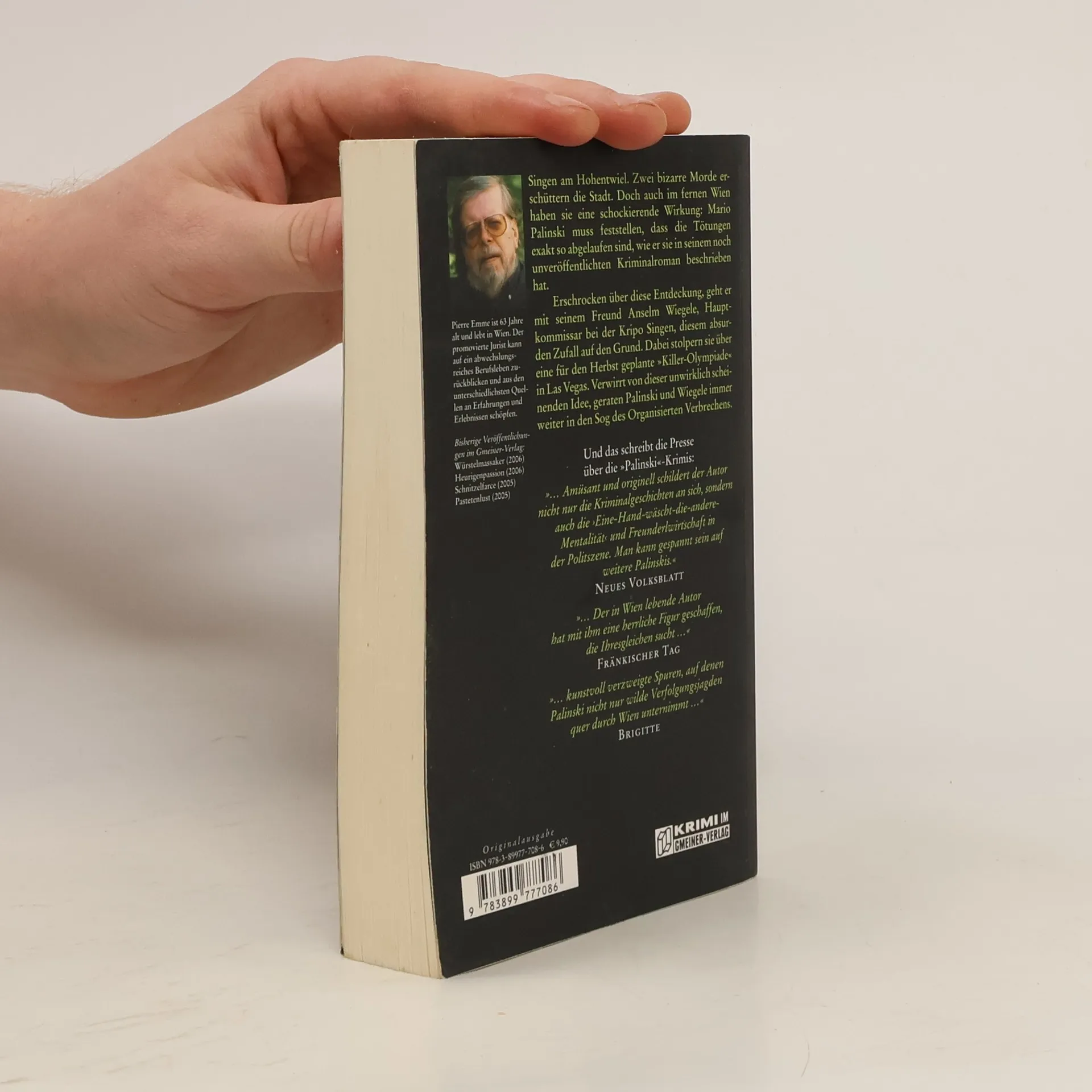 Singen am Hohentwiel. Zwei bizarre Morde erschüttern die Stadt. Doch auch im fernen Wien haben sie eine schockierende Wirkung: Mario Palinski muss feststellen, dass die Tötungen exakt so abgelaufen sind, wie er sie in seinem noch unveröffentlichten Kriminalroman beschrieben hat. Erschrocken über diese Entdeckung, geht er mit seinem Freund Anselm Wiegele, Hauptkommissar bei der Kripo Singen, diesem absurden Zufall auf den Grund. Dabei stolpern sie über eine für den Herbst geplante »Killer-Olympiade« in Las Vegas. Verwirrt von dieser unwirklich scheinenden Idee, geraten Palinski und Wiegele immer weiter in den Sog des Organisierten Verbrechens.