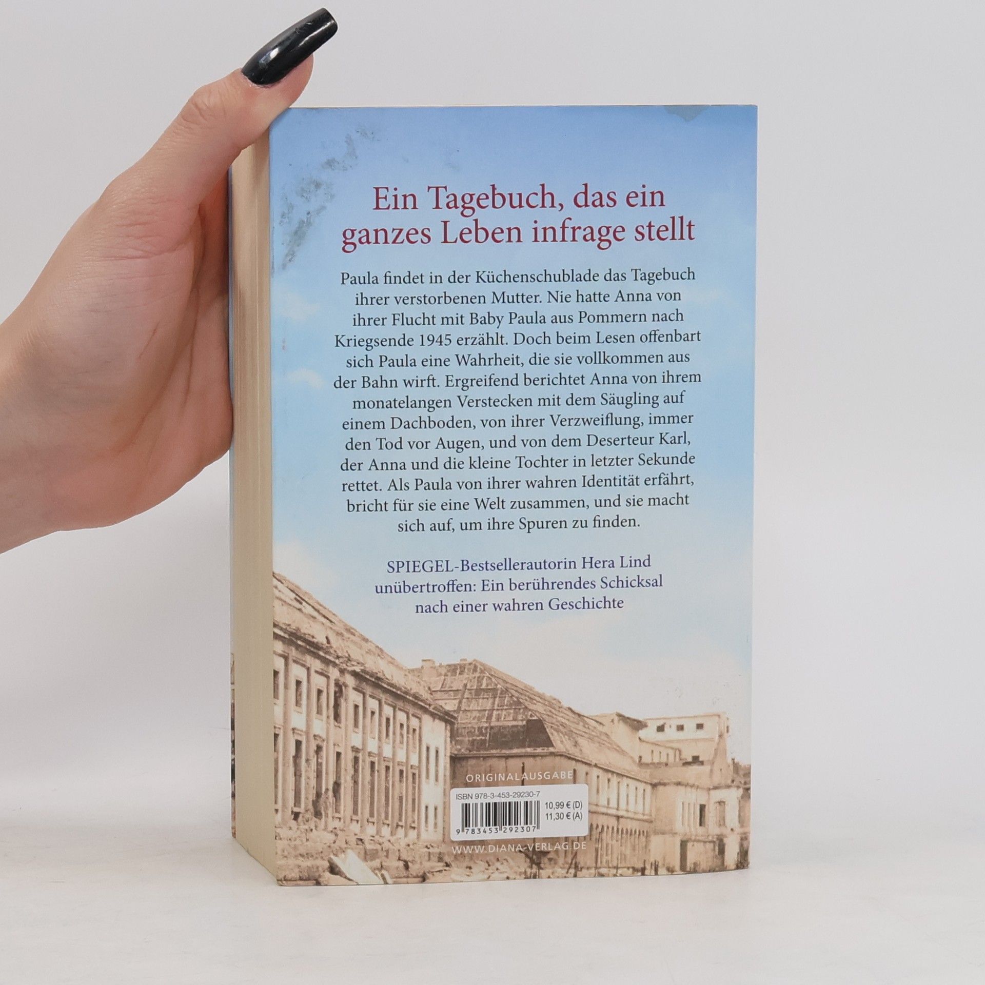 Paula findet in einer Küchenschublade das Tagebuch ihrer verstorbenen Mutter. Nie hatte Anna von ihrer Flucht mit Baby Paula aus Pommern nach Kriegsende 1945 erzählt. Doch beim Lesen offenbart sich Paula eine Wahrheit, die sie vollkommen aus der Bahn wirft. Ergreifend berichtet Anna von ihrem monatelangen Verstecken mit dem Säugling auf einem Dachboden, von ihrer Verzweiflung, immer den Tod vor Augen, und von dem Deserteur Karl, der Anna und die kleine Tochter in letzter Sekunde rettet. Als Paula von ihrer wahren Identität erfährt, bricht für sie eine Welt zusammen, und sie macht sich auf, um ihre Spuren zu finden.