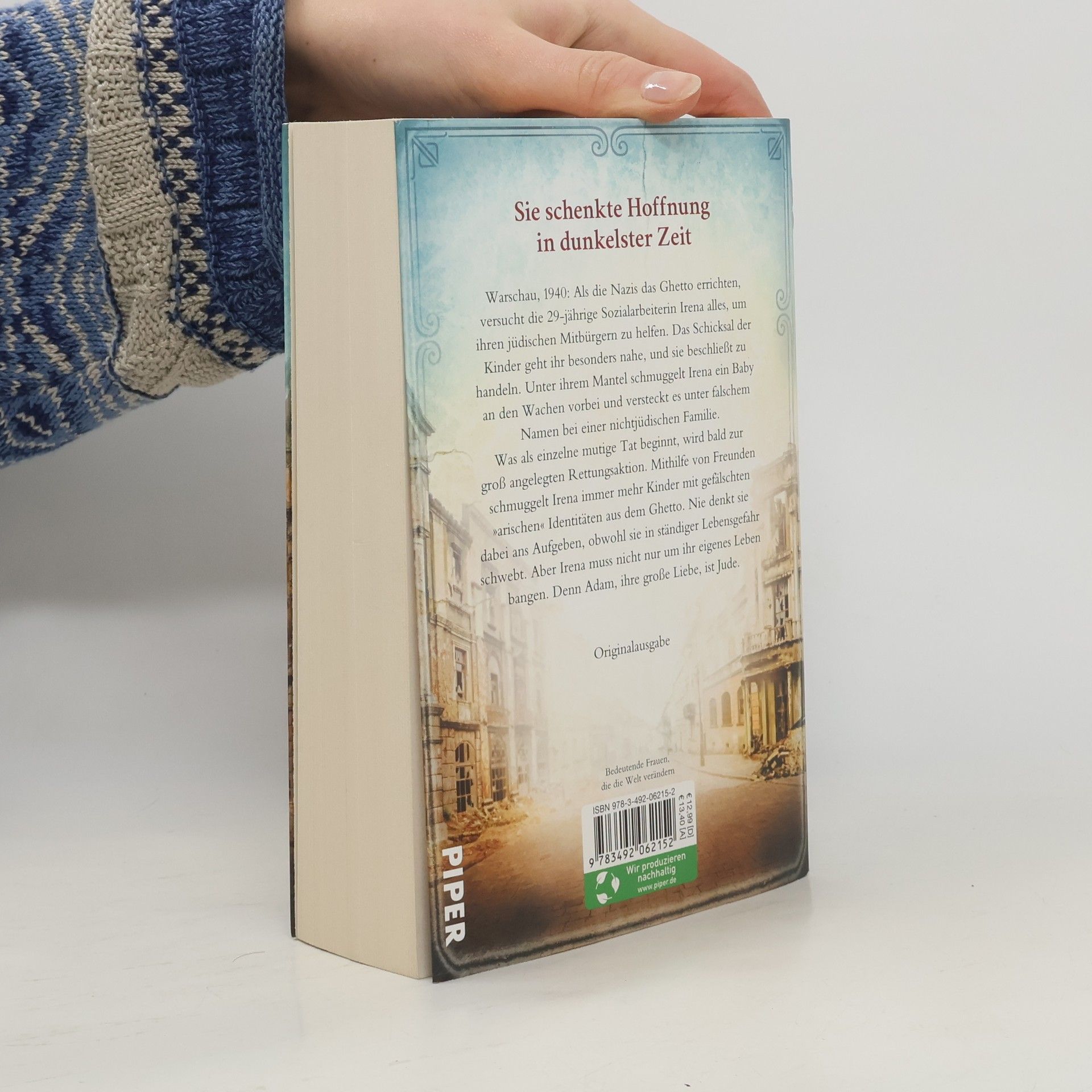 Die Geschichte des »weiblichen Oskar Schindler« Warschau, 1940: Die Nazis errichten das Ghetto. Die 29-jährige Sozialarbeiterin Irena versucht alles, um den jüdischen Menschen zu helfen. Sie versteckt ein kleines, von verzweifelten Eltern ausgesetztes Mädchen unter falschem Namen bei einer nicht-jüdischen Familie. Was als mutige Tat beginnt, wird zur groß angelegten Rettungsaktion. Irena schmuggelt immer mehr Kinder mit gefälschten »arischen« Identitäten aus dem Ghetto. Sie denkt nie ans Aufgeben, obwohl sie in ständiger Lebensgefahr schwebt. Aber Irena muss nicht nur um ihr eigenes Leben bangen. Denn Adam, ihre große Liebe, ist Jude. In dunkelster Zeit schenkte sie Hoffnung Historischer Hintergrund: Irena Sendler (1910-2008) rettete 2.500 jüdische Kinder vor dem sicheren Tod, indem sie sie aus dem Ghetto schmuggelte. Sie hoffte, die Kinder nach dem Krieg ihren Eltern zurückgeben zu können. Selbst als die Gestapo Irena Sendler unter Folter verhörte, soll »Die Mutter der Holocaust-Kinder« keine Informationen preisgegeben haben. 1965 würdigte Yad Vashem Irena Sendler als »Gerechte unter den Völkern«.