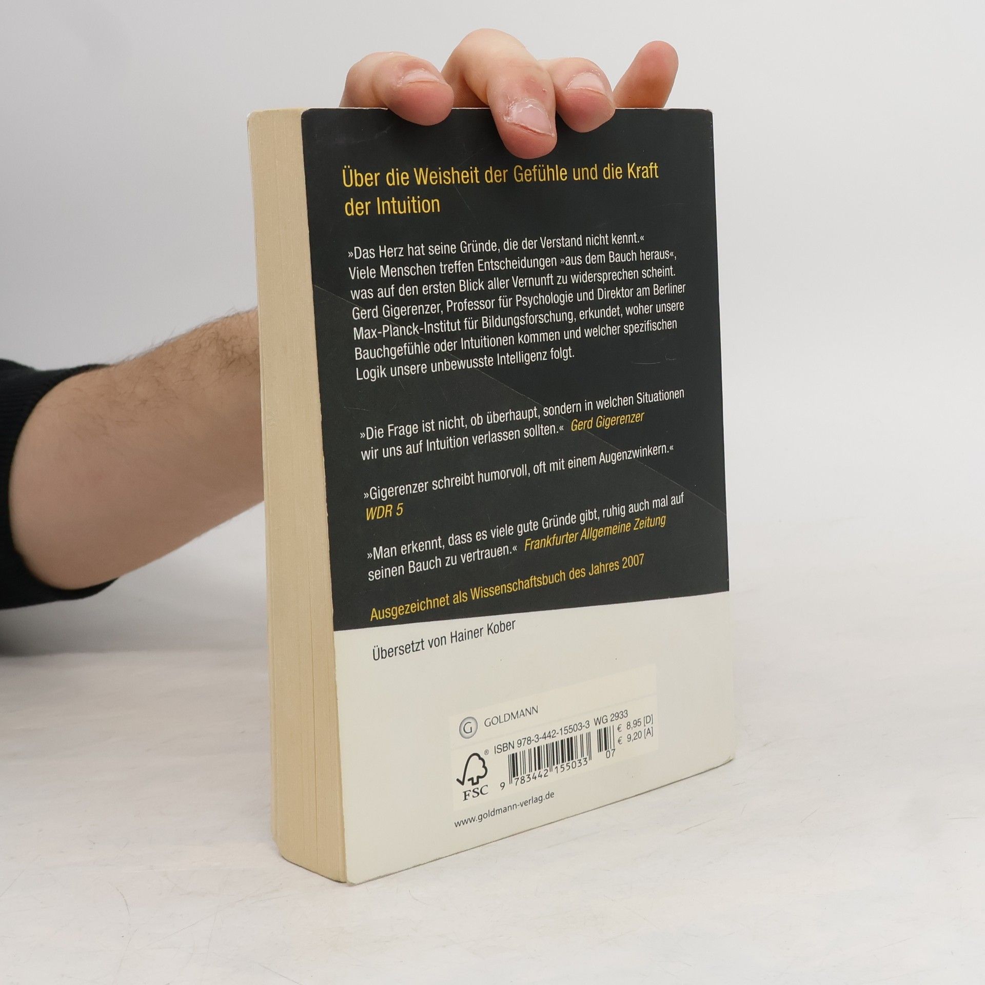 „Das Herz hat seine Gründe, die der Verstand nicht kennt.“ Viele Menschen treffen Entscheidungen „aus dem Bauch heraus“, was auf den ersten Blick aller Vernunft zu widersprechen scheint. Gerd Gigerenzer, Professor für Psychologie und Direktor am Berliner Max-Planck-Institut für Bildungsforschung, erkundet anhand zahlreicher Beispiele, woher unsere Bauchgefühle oder Intuitionen kommen und welcher spezifischen Logik unsere unbewusste Intelligenz folgt.• Das Geheimnis des gefilterten Wissens – Ausgezeichnet als „Wissenschaftsbuch des Jahres 2007“.• Der Bestseller von Gerd Gigerenzer, einem der profiliertesten deutschen Psychologen der Gegenwart. Ausstattung: s/w-Abbildungen im Text ?