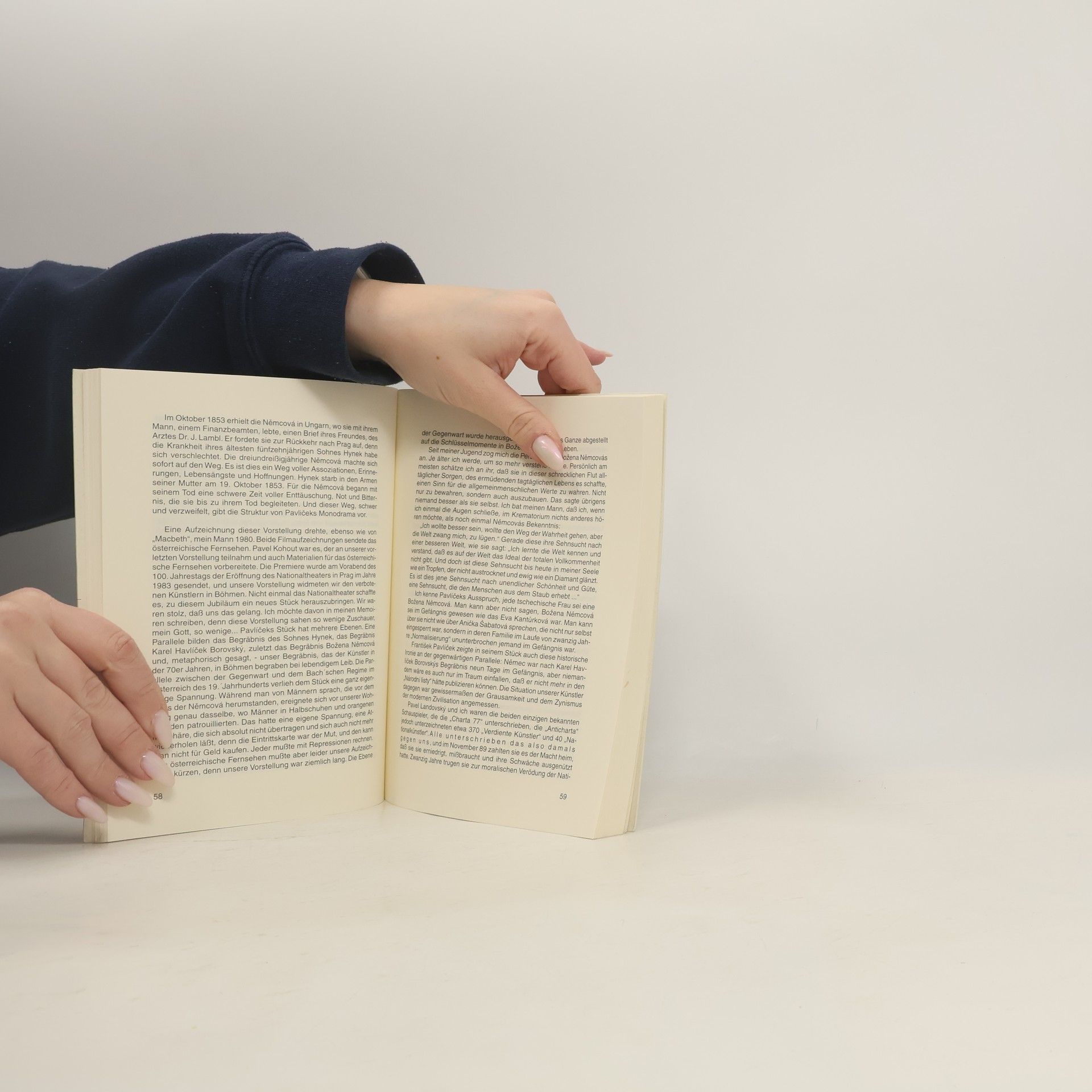 Porträts von neun tschechischen Frauen und ihren Lebensschicksalen bieten Lesern im deutschsprachigen Raum einen Einblick in das Leben in der ehemaligen Tschechoslowakei der letzten Jahrzehnte. Diese Frauen, die in ihrer „inneren Emigration“ leben, spiegeln die geistigen Haltungen ihrer Zeit wider und verdeutlichen gesellschaftliche, kulturelle und politische Probleme des Landes. Die Porträts sind mit Gesprächen und Interviews kombiniert, die zeigen, wie diese Frauen nach 1948, in den 50er Jahren, 1968 und unter dem Husák-Regime lebten – eine politische und alltagsgeschichtliche Dokumentation. Porträtiert werden unter anderem Olga Havlová, die Gattin des tschechischen Präsidenten, die mit ihrem „Komitee des guten Willens“ aktiv war, und die Olympiasiegerin Vera Cáslavská, die wegen ihrer Haltung zum sowjetischen Einmarsch 1968 Arbeitsverbot erhielt. Auch die Schauspielerin Vlasta Chramostová, Mitbegründerin der Charta 77, und die Schriftstellerin Eva Kanturková, die ebenfalls für die Charta sprach, werden vorgestellt. Weitere Porträts zeigen die evangelische Theologin Bozena Komárková, die Schriftstellerin Eda Kriseová, Augusta Skálová, die nach dem kommunistischen Putsch ein Schreibverbot erhielt, Anna Sabatová, die im Gefängnis saß, und die Rückkehrerin Ruth Tosková, die zweimal emigrierte. Die Lebensskizzen sind durch viele, zum Teil unveröffentlichte Fotos ergänzt. Ein Nachwort des Literaturwissenschaftlers Peter Demetz