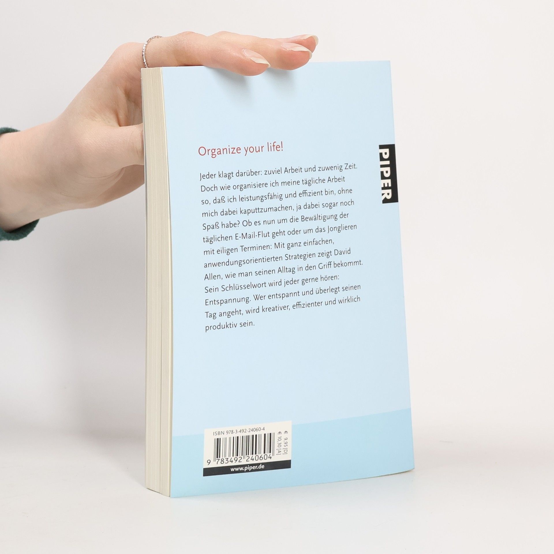 Jeder klagt darüber: zu viel Arbeit und zu wenig Zeit. Doch wie organisiere ich meine tägliche Arbeit so, dass ich leistungsfähig und effizient bin, ohne mich dabei kaputtzumachen, ja dabei sogar noch Spaß habe? Ob es nun um die Bewältigung der täglichen E-Mail-Flut geht oder um das Jonglieren mit eiligen Terminen: Mit ganz einfachen, anwendungsorientierten Strategien zeigt David Allen, wie man seinen Alltag in den Griff bekommt. Sein Schlüsselwort wird jeder gerne hören: Entspannung. Wer entspannt und überlegt seinen Tag angeht, wird kreativer, effizienter und wirklich produktiv sein.
