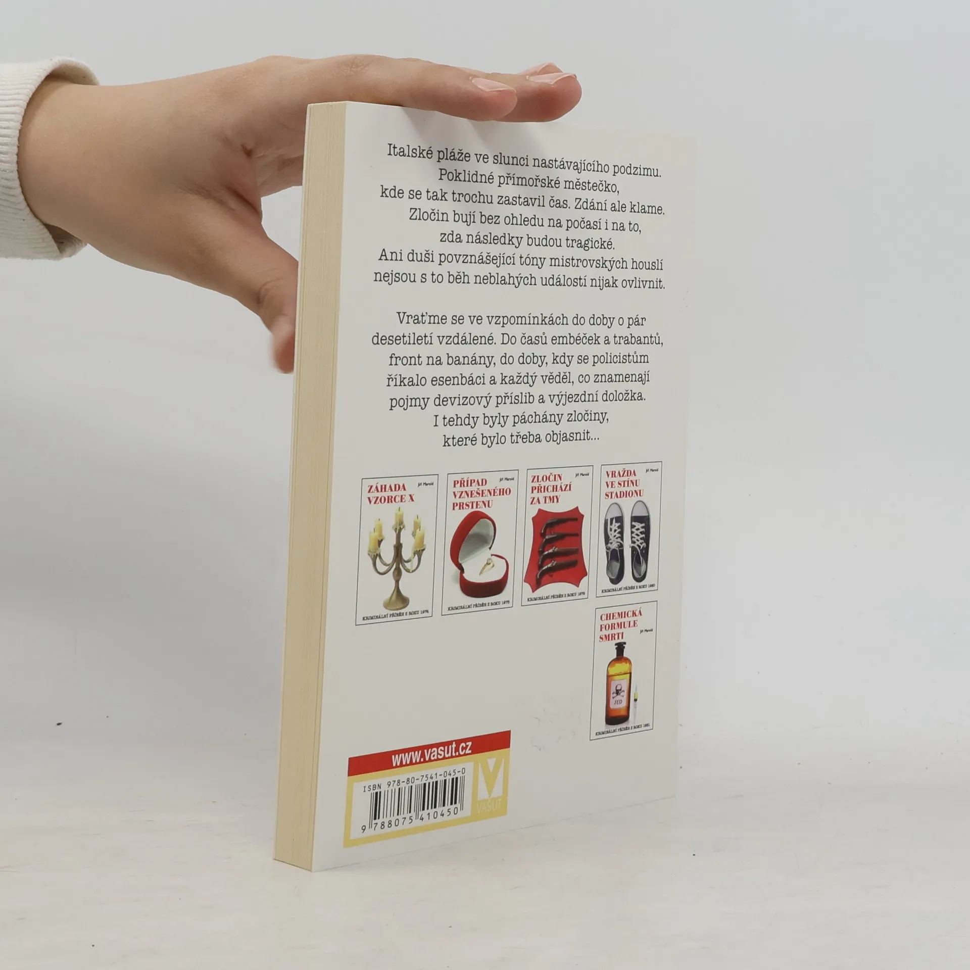 Italské pláže ve slunci nastávajícího podzimu. Poklidné přímořské městečko, kde se tak trochu zastavil čas. Zdání ale klame. Zločin bují bez ohledu na počasí i na to, zda následky budou tragické. Ani duši povznášející tóny mistrovských houslí nejsou s to běh neblahých událostí nijak ovlivnit. Vraťme se ve vzpomínkách do doby o pár desetiletí vzdálené. Do časů embéček a trabantů, front na banány, do doby, kdy se policistům říkalo esenbáci a každý věděl, co znamenají pojmy devizový příslib a výjezdní doložka. I tehdy byly páchány zločiny, které bylo třeba objasnit…